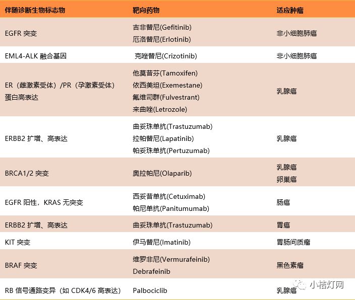 常用肿瘤靶向药物和相应的伴随诊断生物标志物