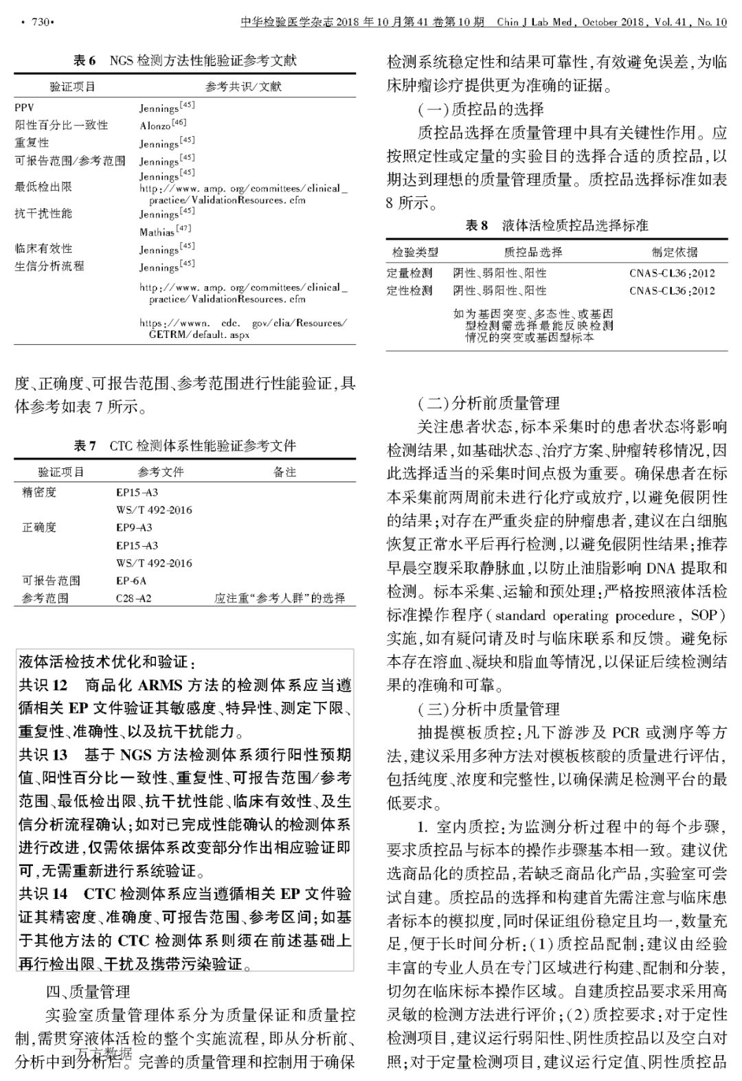 液体活检在临床肿瘤诊疗应用和医学检验实践中的专家共识