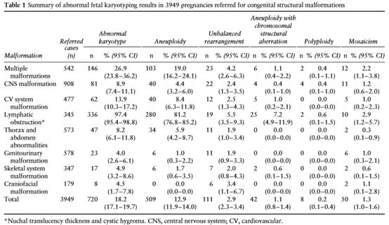 病人入组 从2011年1月至2015年12月,由于在产前超声检查和/或磁共振成像中检测到胎儿结构畸形,共有3988名孕妇被转诊到广州市妇女儿童医疗中心的产前诊断中心。我们中心进行了超声检查和/或磁共振成像确认诊断。异常包括结构畸形,颈部半透明厚度≥3.5mm和囊性水肿。异常不包括孤立的超声软标记,如脉络丛囊肿,心脏或肠中的回声灶,增厚的颈部褶皱,缺乏鼻骨,单脐动脉或持续的右脐静脉。根据侵入性产前检测时的胎龄,使用绒毛膜绒毛取样,羊膜穿刺术和脐带穿刺术收集胎儿样品。
