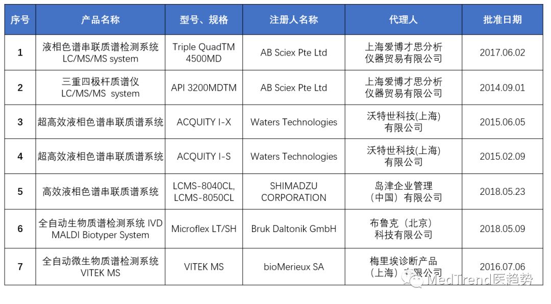 当然,临床质谱的价格相对较高,是否能真正争夺主流市场,这也将成为其未来发展需要克服的难点。 越来越多质谱产品上市,IVD人迎广阔机遇 当下,越来越多的仪器公司,赛默飞、丹纳赫、岛津、安捷伦、布鲁克纷纷看好中国临床检测市场的巨大潜力,也有越来越多的国产临床质谱产品已经获批上市,这也为广大IVD人带来了广阔机遇。以下,我们对于已获批上市的临床质谱产品进行了汇总。 国产临床质谱获批产品汇总表: 进口临床质谱获批产品汇总表: 2019年,医改继续,控费继续。降价仍然是行业所面临的问题。新技术的发展将带来机遇。 随着越来越多的本土、外资临床质谱仪的获批上市,中国IVD发展将进入一个新的局面。 |