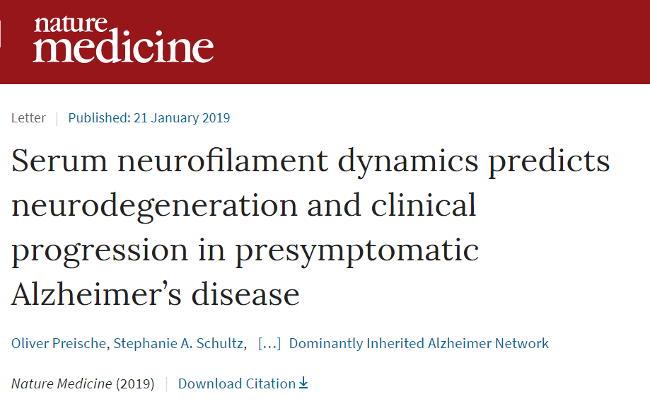 为此,德国神经退行性疾病中心(DZNE)、Hertie 临床脑研究所(HIH)和Tuebingen大学医院的科学家们联合展开了一项阿尔茨海默症早期血液检测研究。研究结果显示,在出现症状前16年,血液中的一种蛋白质——神经丝轻链蛋白(NFL)可以在阿尔茨海默症出现临床症状之前,进行精确地预测并监测疾病进展。新发现的血液生物标志物为阿尔茨海默症的早期诊断、治疗提供了新的可能性。1月21日,相关研究结果发表在Nature Medicine。 在阿尔茨海默症患者中,淀粉样蛋白会在大脑中积聚并且进入血液循环。以往对该疾病的研究多是围绕淀粉样蛋白展开。但该研究团队另辟蹊径,没有关注这些淀粉样蛋白,而是通过液体活检研究其在大脑中引起的神经退行性变化,或者说是神经元的死亡。 与基于ctDNA的肿瘤早筛原理类似,神经元死亡时也会将一些蛋白质等物质输送进血液。在正常情况下,蛋白质会在血液中被迅速降解,因此不适合作为神经退行性疾病的生物标志物。但万事都有例外,有一种神经丝蛋白(NfL)就可以逃过被降解的命运。该最新研究成果就是基于这种蛋白获得的。 该研究对187名个体的脑脊液和405名个体(包括携带阿尔茨海默氏症风险等位基因个体及其未携带相关突变的亲属)的血清中的NfL水平进行了研究。研究团队年复一年的检测这些参与者体内的NfL浓度变化。研究发现,在阿尔茨海默症出现症状的前16年中,NfL会在血液和脊髓液中累积,并且NfL增长速度与大脑楔前叶萎缩有关,那些NfL水平迅速上升的患者在认知检测中的表现更差。 在进一步的研究中,科学家们发现,NfL浓度变化可以非常准确地反映神经元的退化,敏感地反映疾病的发展过程,预测脑损伤将如何发展以及认知变化。表明NfL浓度的变化与神经退化密切相关,或可作为非侵袭性的生物标志物追踪病情进展。 NfL不仅在阿尔茨海默氏症患者的血液中积累,在其他神经退行性疾病的过程中也是如此。NfL不是阿尔茨海默症独有的特异性标志物,并且很容易纳入神经科诊所的筛选试验中。或许几年后,我们有望看到这一方法用于识别个别患者的脑损伤迹象。目前,该研究方法已经在阿尔茨海默症患者中得到了验证,并能准确预测疾病的病程,或将成为临床试验中研究新阿尔茨海默症治疗方法的有力工具。 参考资料: 1.Serum neurofilament dynamics predicts neurodegeneration and clinical progression in presymptomatic Alzheimer’s disease 2.Early prediction of Alzheimer's progression in blood 3.Protein Changes Detected in Blood Years Before Alzheimer’s Onset |