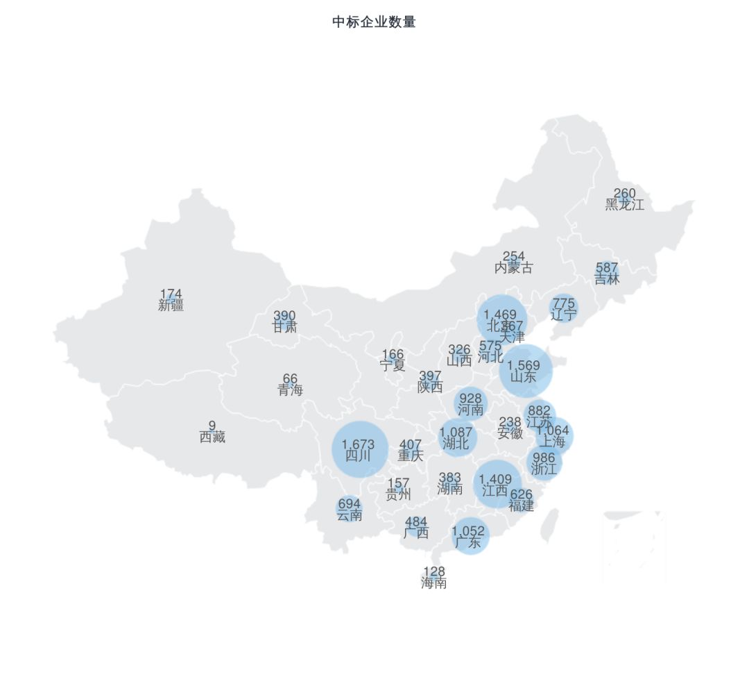 2018年,中标医疗器械的企业最多的省份是四川,其一省就有1673家医疗器械企业中标医疗器械。 除四川外,山东、北京、江西、湖北、上海、广东6个地区也都有超过1000家企业中标医疗器械。