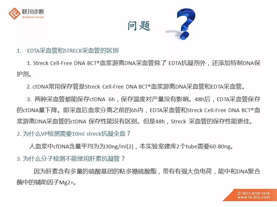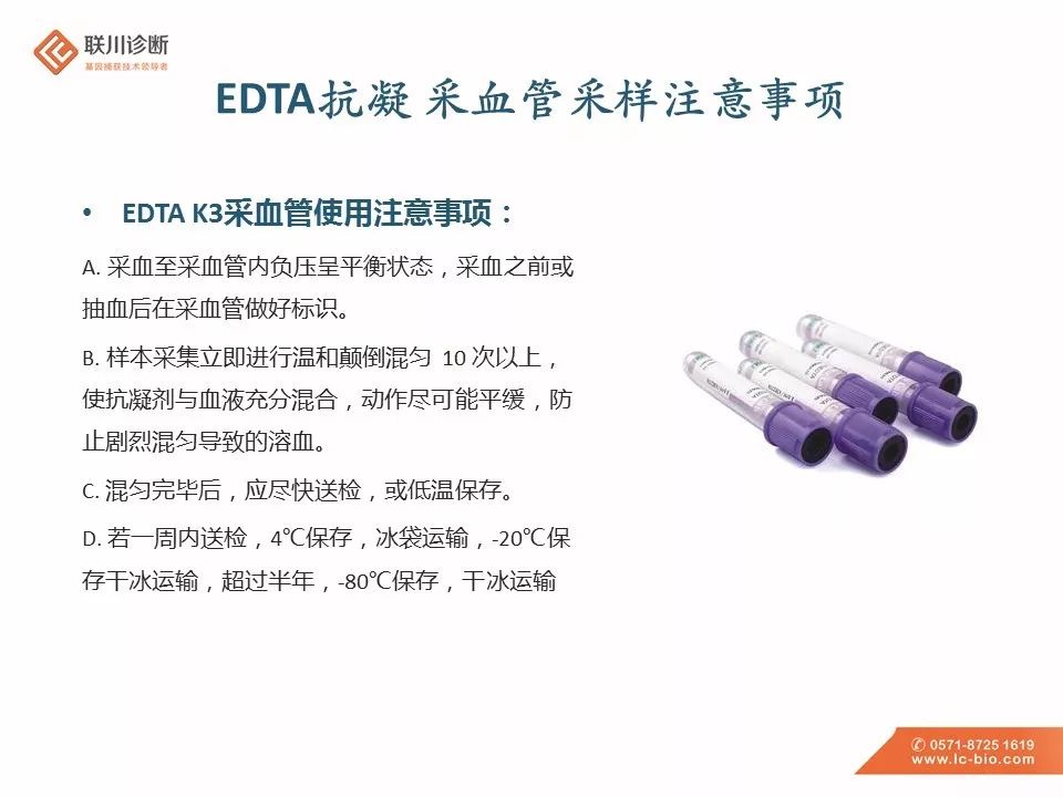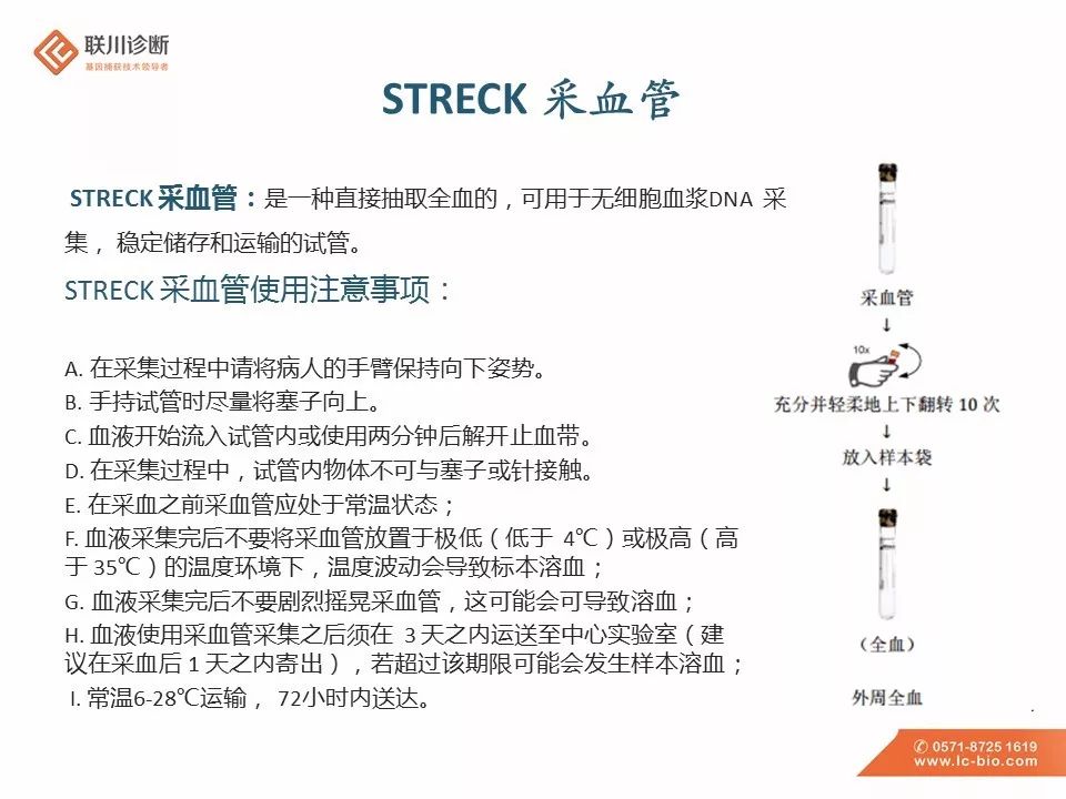 引言 血液中含有循环肿瘤细胞(CTCs)和循环肿瘤DNA(ctDNA)。通过液体活检技术对ctDNA进行检测和定量,可以在血浆游离DNA样本中识别各种肿瘤特异性遗传畸变、易位、插入或缺失、点突变、扩增和表观遗传标记。 血液样本已然成为临床检测中一个重要的样本类型,如何采集血液样本,合适的保存及运输条件也成为样本采集人员关注的问题。今天小编产品部的同事将为大家带来血液样本的采集及保存运送要求,欢迎各位评论、交流。 [1]https://wenku.baidu.com/view/820e6e44a8956bec0975e3fb.html [2]王迪,刘慧颖,阳振曦,张岳,车轶群.循环游离DNA检测用血量的改进及其临床应用[J].标记免疫分析与临床,2018,25(10):1489-1494. [3]ULZ P, HEITZER E, GEIGL JB, et al. Patient monitoringthrough liquid biopsiesusing circulating tumor DNA[J]. Int J Cancer, 2017, 141(5):887-896.DOI: 10.1002/ijc.30759. [4]转化医学网-血液检测:关于cfDNA、ctDNA、CTC的那些事儿 [5]郎吉萍,苗芸.细胞游离DNA在器官移植中的应用[J].器官移植,2018,9(06):460-462. |