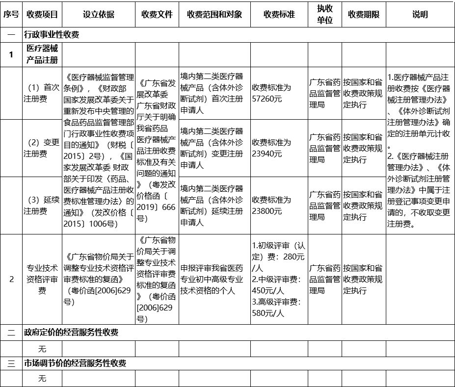 摘要: 2019年3月8日,广东省药监局(局本部和直属事业单位)收费目录清单予以公布。清单中包括境内二类医疗器械注册收费目录清单、医疗器械检验所收费目录清单和包装材料容器检验中心收费目录清单,以下是详细内容:广东省 ...