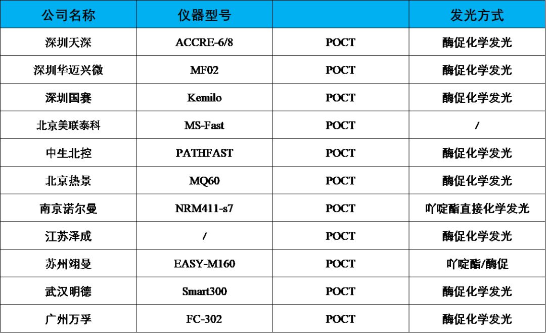 什么是POCT Point-of-care testing (POCT)被称为即时检验或床旁检测,其定义为在护理点或附近的医疗诊断检测。与之相对的是医学中心实验室检验(检验科),实际上医院大部分的样本都是通过中心实验检测的,从病人护理点即采血点收集标本,送到医学中心实验室检测,再将结果反馈到病人医生,整个过程需要等待数小时或数天。而POCT无需通过中心实验室进行,直接在病人护理点采集样本,测试,中间省去一大部分的时间。对于类似于心肌梗塞、脓毒症等急性疾病,诊断时间是极为关键的,因此POCT广泛应用于这两个场景。 侧向免疫层析检测,即试纸条,是POCT的一种主要的形式,而且由于侧向免疫层析检测太主要,太著名,一般提到POCT,如果不特别说明,一般会默认为是侧向免疫层析检测。 △侧向免疫层析试纸条结构图 与之前提到的,侧向免疫层析经历了几个阶段的发展,从最开始的胶体金,荧光微球,到如今的磁免疫层析,量子点免疫层析,侧向免疫层析检测在不断的进化,一次次突破自己的检测“下限”,提高检测灵敏度。 什么是化学发光POCT 化学发光免疫分析结合了化学发光的高灵敏度和免疫分析的高特异性,在临床检验,药物分析,环境监测等领域得到了广泛应用。化学发光检测灵敏度高,检测范围宽,检测重复性好,仪器试剂精密度高。得益于这些优势,全自动化学发光仪器是大型医院中心实验室主要的免疫检测仪器。所谓的化学发光POCT就是将化学发光检测技术应用于POCT检测场景。这种结合的主要驱动力来自于侧向免疫层析检测的结果无法满足日益增长的临床对检测灵敏度、检测精密度的要求,同时,全自动化学发光仪器和试剂无法与进口四大家形成直接竞争。 化学发光POCT厂家 △化学发光POCT厂家-仪器统计表/生物医学知识局制表 全自动化学发光免疫检测本身技术难度就比较高,需要高精密度的仪器以及高质量的试剂配套,而传统的全自动化学发光仪器尺寸体积都比较大,因此要把化学发光免疫检测做成POCT的形式,难度也会有所增加。 截至2018年11月,我们一共统计了11家化学发光POCT仪器的厂家。得益于深圳和北京的城市创新性,这两个城市的外诊断行业经过多年发展,积累了大量的技术和人才,因此两个城市在化学发光POCT方面的领先也不足为奇。另外,我们可以看到,11家厂家当中,有8家采用酶促化学发光方法,只有南京诺尔曼的NRM411-s7采用吖啶酯直接化学发光。苏州翊曼的EASY-M160是开放性仪器,因此同时兼容酶促化学发光和吖啶酯直接化学发光。 如此之多的厂家采用酶促化学发光,其中一个重要原因是,吖啶酯直接化学发光是闪光型,发光时间较短,在加入发光激发液后,需要在极短的时间内测定发光值,因此必须采用原位进样-测定的方式。而由于POCT主打的就是小型、轻便,因此仪器较难实现这一操作。但是从试剂的角度上看,酶促化学发光常常需要1-5min的底物孵育时间,而吖啶酯直接化学发光添加发光激发液后,在极端的时间内即可完成测试,因此理论上来说,更复合POCT快速的要求。 △深圳天深以及南京诺尔曼的POCT化学发光仪器性能对比/生物医学知识局制表 我们选取了两个典型的化学发光POCT仪器参数对比。从表中可以看到,由于深圳天深采用酶促化学发光,因此首结果时间10分钟,较采用吖啶酯化学发光的南京诺尔曼长,后者只需要7分钟即可出第一份结果,检测速度直追侧向免疫层析POCT检测。且检测结果更为精确,能够实现高敏肌钙蛋白的检测。 虽然如此,深圳天深的检测速度也只是仅仅落后了3分钟,但是仪器的尺寸和重量几乎是南京诺尔曼NRM411-s7的一半,且采用单人份发光试剂条,在实验场地、实验室面积极为缺稀的临床科室,更加复合POCT的概念。 传统POCT厂家的“攻防” △三家上市POCT厂家2018年第三季度业绩/生物医学知识局制表 从三家上市POCT厂家的业绩报告来看,业务都比较稳定。但是,化学发光大厂家,如安图、迈克、迈瑞、新产业等厂家都会对POCT业务造成一定冲击,而且下面还有一众POCT厂家的围追,三家POCT厂家对自身业务都进行了提前布局。 万孚生物业务体量以及增长速度都是排名第一的。其采取多种策略保证其在市场的竞争力。一是通过检测产品的多元化和差异化,扩大其市场。如流感病毒检测,同时开展政府毒品执法检测、药物滥用检测等,将其业务扩展至医疗健康之外。同时,通过收购达成生物对化学发光市场进行布局。 基蛋生物在POCT的体量和增速都排在第二位,武汉明德排在第三位,两家厂家都同时在化学发光上进行了布局。其中基蛋生物采取的自主研发仪器、试剂的方式进行业务拓展,其全自动化学发光检测设备MAGICL6800在2015年就取得了注册证。武汉明德采取试剂先行的方式,在重庆科斯迈小型化学发光仪器SMART300上面进行试剂开发,继续对POCT检测业务进行深耕细作。 面对化学发光免疫检测的POCT化,传统的侧向免疫层析POCT也在不断的突破自我,通过不断技术革新,提高检测的灵敏度和可靠性。 ////////// 就笔者看来,化学发光POCT确实能够提高检测的灵敏度以及可靠性,但是对于新的技术和理念的接受,特别是对于医疗仪器相对比较保守的行业,有一定的滞后性。而侧向免疫层析检测POCT依然有上升空间和市场,因此二者之间的竞争,在未来5至10年内,都是一个开放性的课题。 对于中国医疗器械来说,这是一个最坏的时代,也是一个最好的时代。