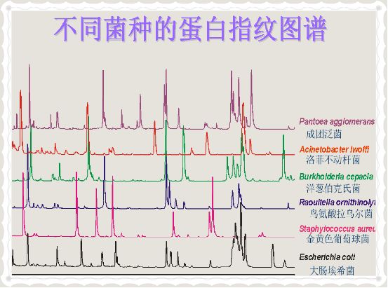 一 微生物质谱检验技术 微生物质谱检验技术是将样品分散在基质分子中并形成晶体。当用激光照射晶体时,基质从激光中吸收能量,样品解吸附,基质-样品之间发生电荷转移使得样品分子电离,电离的样品在电场作用下飞过真空的飞行管,根据到达检测器的飞行时间不同而被检测,即通过离子的质量电荷之比(M/Z)与离子的飞行时间成正比来分析离子,从而测得并绘出样品分子的质谱图。蛋白质是生命的物质基础,不同的细菌或不同疾病的样品,其蛋白质的种类和含量不同。不同的蛋白质解析后形成的多肽片段的种类、数量和分子量也不一样,在一定的条件下,在电离空间的运动速度和距离不同。用质谱仪将各种蛋白质解析后在电离空间的运动速度和距离的轨迹记录和描绘下来,则会形成不同的曲线图形。 二 微生物质谱仪产品介绍