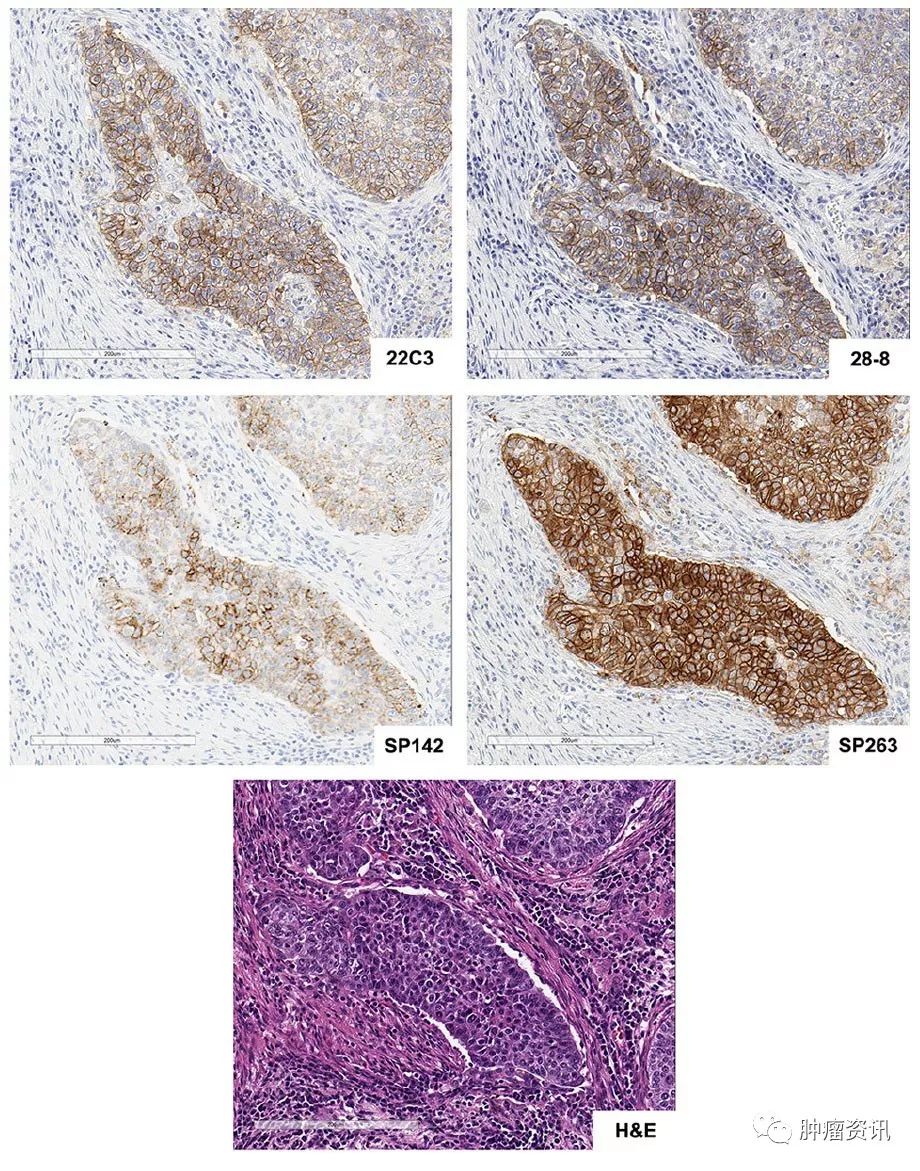 2018年12月27日,国家药品监督管理局(NMPA)批准信迪利单抗注射液上市,至此已有包括纳武利尤单抗、帕博利珠单抗、特瑞普利单抗和信迪利单抗4款抗PD-1抗体在国内正式获批上市。截至2018年12月27日,美国食品和药物管理局(FDA)也已批准6种抗PD-1/L1单抗用于多种晚期恶性肿瘤的治疗。面对越来越多的抗体类药物选择,临床该如何判断? 上海市胸科医院病理科主任 免疫治疗,诊断先行 不同于传统化疗手段,肿瘤免疫治疗通过调动机体的免疫系统,增强或正常化人体抗肿瘤免疫系统,从而抑制和杀伤肿瘤细胞。由于能够提供持久的疗效,让长期生存成为可能,以PD-1/PD-L1免疫检查点抑制剂为代表的免疫治疗是肿瘤治疗领域中最具前景的研究方向之一。PD-1/PD-L1免疫检查点抑制剂取得的突破性临床研究进展也正迅速改变着多种肿瘤的治疗模式[1],对临床诊疗实践提出了新的挑战。 上海市胸科医院病理科主任韩昱晨教授指出:“免疫治疗的第一步是病理诊断。目前广泛应用的PD-1/ PD-L1单抗虽然属于广谱抗肿瘤治疗药物,然而仍需筛选出真正可能获益的患者给予治疗,一方面可以提高治疗疗效,另一方面也可以尽可能避免无效治疗。积累中国人群的临床实践数据,更精准地指导临床诊疗也是当务之急。对于如何通过病理诊断筛选出从免疫治疗中真正获益的患者群,一直是临床研究的热点。 ” PD-L1检测是目前筛选获益患者唯一标准 大量研究表明,肿瘤组织样本中PD-L1表达水平越高,则意味着患者更可能从PD-1/PD-L1抑制剂治疗中获益[2]。肿瘤组织PD-L1表达水平评估是目前临床研究、验证和认可度最广泛的PD-1/PD-L1抑制剂疗效预测标志物。而免疫组化方法学是目前临床诊断级别评估肿瘤组织PD-L1表达水平的唯一方法学。目前FDA获批具有代表性的4种PD-1/PD-L1单抗(nivolumab、pembrolizumab、atezolizumab和durvalumab)都有相对应的伴随诊断联合使用,在临床诊疗实践中,到底是应该先选择PD-L1检测方法还是先选择治疗药物?不如,先来看看检测适应症与关联药物的比较: 表1. FDA/CE IVD已获批的4种PD-L1检测汇总 从国际上已报道的研究来看,针对以上4种PD-L1表达检测,2017年发布在《Clinical Cancer Research》杂志上的一项研究显示,SP263和22C3、28-8具有较好的一致性,在PD-L1肿瘤细胞膜染色不同阈值(1%、10%、25%和50%)的比较上,三种方法的总体一致率>90%[10]。由国际肺癌研究协会(IASLC)发起的Blue Print 1和Blue Print 2研究显示出相似的结果[11],[12]。相比之下, SP142检测肿瘤细胞PD-L1表达需要更高的阈值,但在免疫细胞的检测上具有更好的敏感性[11],从最新的研究更新来看,SP142在需要或仅需要评估免疫细胞PD-L1表达水平的适应症上具有显著优势。值得注意的是,VENTANA PD-L1(SP263)可以同时检测细胞膜和细胞浆中的PD-L1表达,欧盟体外诊断医疗器械(CE IVD)认证批准可同时指导nivolumab、pembrolizumab和durvalumab治疗[1],[3],[10]是目前国际上关联药物最多的检测[1]。 图1. 非小细胞肺癌(NSCLC)组织HE染色 (20X) 及4种FDA/CE IVD认证获批PD-L1检测染色图示(20X). Hirsch, Fred R., et al. Journal of Thoracic Oncology12.2 (2017): 208-222. PD-L1检测发展方向 2018年是中国免疫治疗的元年,4款PD-1单抗类药物先后获批上市,然而中国市场暂时还没有用于疗效预测评估的PD-L1伴随诊断获批上市,这对于临床医生在制定治疗决策时,如何评估患者从PD-1/PD-L1单抗类药物治疗方案获益情况提出了挑战。 “目前获批的药物及适应症均有各自的伴随诊断检测和判读体系,但由于晚期非小细胞肺癌肿瘤组织样本有限,因此临床实践中在优先保证PD-L1检测标准化、准确的前提下,应综合考虑,尽可能避免过度检测和标本的浪费。SP263检测在CE IVD认证的一致性评价获批[1],[3],[10]带给我们一些启示,从各药企已披露的临床实验进展来看,预期未来还会有更多的PD-1/PD-L1抗体类药物获批上市,因此从医药经济学角度考虑,在实践中选择经临床验证、法规审批、关联药物较多的PD-L1检测用于PD-L1表达水平的初步评估或值得探索。”韩昱晨教授总结道,“免疫治疗开启的肿瘤诊疗新时代,对病理科的发展也提出了新的挑战。PD-L1检测规范化标准化建设任重道远,除了抗体、检测平台、评价方法体系的选择,探索基于中国人群研究的多种标志物联合评价也将有助于PD-L1检测更好地指导PD-1/PD-L1抑制剂疗效的预测。” [1] 2018 ESMO handbook of immune-oncology. [2] Hegde, Priti S., Vaios Karanikas, and Stefan Evers. "The where, the when, and the how of immune monitoring for cancer immunotherapies in the era of checkpoint inhibition." (2016): 1865-1874. [3]https://diagnostics.roche.com/global/en/products/tests/ventana-pd-l1-_sp263-assay2.html [4] https://www.agilent.com/en/product/pharmdx/pd-l1-ihc-22c3-pharmdx/pd-l1-ihc-22c3-pharmdx-for-autostainer-link-48-94448 [5] https://www.agilent.com/en/product/pharmdx/pd-l1-ihc-28-8-pharmdx/pd-l1-ihc-28-8-pharmdx-for-autostainer-link-48-76917 [6]https://diagnostics.roche.com/global/en/products/tests/ventana-pd-l1-_sp142-assay2.html [7]https://www.accessdata.fda.gov/scripts/cdrh/cfdocs/cfpma/pma.cfm?ID=394004 [8]https://www.fda.gov/MedicalDevices/ProductsandMedicalProcedures/InVitroDiagnostics/ucm301431.htm [9]https://www.accessdata.fda.gov/scripts/cdrh/cfdocs/cfpma/pma.cfm?id=P150027 [10] Ratcliffe, Marianne J., et al. "Agreement between programmed cell death Ligand-1 diagnostic assays across multiple protein expression cutoffs in non–small cell lung cancer." Clinical Cancer Research (2017). [11] Hirsch, Fred R., et al. "PD-L1 immunohi
