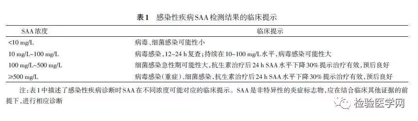 建议7:在进行感染性疾病诊断时,应结合临床对可引起SAA升高的非感染性疾病进行鉴别,以区别患者非感染性疾病的急性期。 结 语 目前,临床常用的炎症标志物有多种,在感染性疾病的诊断、分层、治疗监测及预后评价中发挥重要作用,尤其对指导抗生素的合理使用有很大的帮助。SAA作为血清学炎症标志物,在机体急性感染过程中发挥重要作用,与现有的血清学标志物相比有明显的优势。SAA在感染急性期3~6h内迅速升高,并且在疾病的恢复期迅速下降;在病毒感染性疾病中,SAA显著升高,CRP不升高;在细菌感染性疾病中,SAA的敏感性高于CRP,上升早、幅度大。 随着对SAA蛋白结构、生物活性的了解、检测技术的不断成熟,作为一个近期以炎症标志物应用于临床的检测指标,SAA对感染性疾病的早期诊断、疾病分层、治疗监测、预后评价等一定会发挥重要的价值。 |