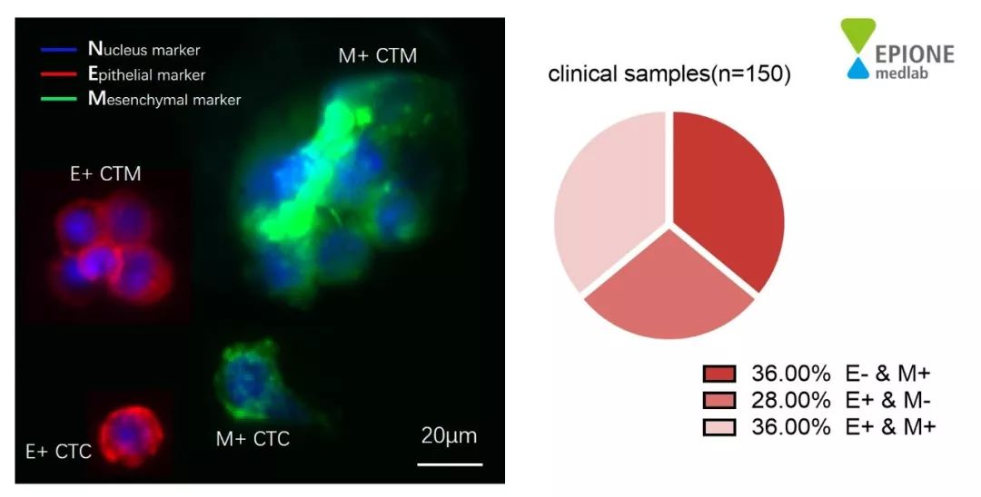 90%以上的癌症死亡与肿瘤转移有关,如何及时发现、并有效地抑制肿瘤转移一直以来都是医学界的重要课题。2019年Cell杂志第一期以封面文章的形式发表的一篇关于循环肿瘤细胞(CTC)的研究发现,在小鼠模型中,通过抑制CTC聚集成团,将肿瘤转移风险降低了80倍,实现不需要杀死肿瘤细胞即可有效控制癌症转移。该研究不仅开辟了一条新的癌症治疗思路,也再一次突显出CTC的临床应用价值。 CTC在被发现之初,就被扣上了肿瘤转移罪魁祸首的帽子。CTC是如何从原有肿瘤脱落,进入血液,并最终成功转移形成新的肿瘤呢?最近几年,随着CTC检测技术的不断进步,科学家们对于CTC导至肿瘤转移的机制的认识也不断深入。 目前为止,最具代表性的癌症转移理论就是肿瘤细胞的上皮-间质转化(EMT),为了从肿瘤原发灶脱离出来,部分肿瘤细胞会发生EMT,降低与周围其他肿瘤细胞的黏附力,并增加本身的迁移和侵袭能力。 肿瘤的转移过程 CTC的EMT过程已在很多临床研究中被证实, 科学家们在乳腺癌、肠癌、肝癌、胃癌等患者的外周血中,除了检测到上皮型CTC(E+ CTC)外,还发现存在一定比例的间质型CTC(M+ CTC)。顿慧医疗qixia普恩检验的ChimeraX® CTC 检测 在150例阳性(CTC≥1/5mL)样本中(包含了肝癌和胃癌临床样本),也发现了相近的CTC异质性,并且在多例样本中检测到了间质型CTC团(M+ CTM)。