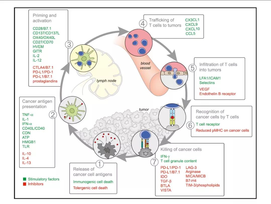 癌症是典型的多细胞增殖失控性疾病。一般认为,地球生命在6亿年前出现多细胞生命,现存的海绵类多孔动物门是最早出现的多细胞动物。人类的疾病多少与先天发育不足有关,另外一些与后天的损伤有关。人体内的主要系统只有2种:代谢和免疫,所有的疾病不外此2种。 1亿年前,鼠与人类的共同祖先出现。 人与人之间的基因组相似度在99.99%。我们血缘关系最近的亲属——黑猩猩,在基因上与我们人类的相似度达到了96%。人类和猕猴共有93%的DNA。猫的基因与我们人类有着90%的相似性。 当涉及到蛋白编码基因时,老鼠与我们有着85%的相似度,但是在非编码基因上,只有大约50%的相似度。国家人类基因研究所把这种相似性归咎于大约8千万年前的共同祖先。几乎所有的人类基因在老鼠身上都有个明确的对应基因,但是蛋白质编码基因只占据了各自基因组的1.5%,基于此,能治愈老鼠的化合药物通常对人类无效。 2009年《科学》杂志上的一篇报道,家牛与我们人类共享大约80%的基因。鸡与人类共享了大约60%的基因。果蝇与人类共享了61%的致病基因,这对于美国宇航局探索太空旅行可能对人类基因产生的影响非常重要。香蕉也与人类共享了大约60%的基因。 目录 一、免疫发展史 二、免疫学原理 三、主要抗癌免疫疗法 四、免疫状态评估 五、免疫治疗毒性和疗效评估 六、ICIs耐药现象的解释 七、临床应用 一、免疫治疗简史 免疫系统是多细胞动物特化的一个系统,用以维持多细胞动物在细胞层面和分子层面的稳定性。在单细胞动物中存在的原始基本机制是多细胞化后复杂机制的基础,类如在单细胞动物中的分子系统CRISPR-cas系统就是一个维护单细胞稳定性的免疫机制。 1909年Paul Ehrlich提出免疫监视学说,认为免疫系统可以遏制肿瘤的发生,免疫功能异常是肿瘤发生的基本原因之一。 1959年Frank Macfarlane Burnet和Lewis Thomas(曾任MSK院长)提出了“免疫监视(tumor immune surveillance)”的假说,该假说认为免疫系统能够识别并清除恶性肿瘤,从而抑制了肿瘤的发生发展。 2002年Gavin P Dunn和RobertD Schreiber等首次提出了肿瘤免疫编辑(Tumor Immunoediting)学说,系统阐述了癌症和免疫系统之间的三阶段关系。 二、抗癌免疫学的基本原理 100余年人类对免疫系统的不懈研究,目前已经对该领域的主要问题有了一些粗浅的认识。陈列平教授将人类对抗癌免疫的认识过程总结为,三大基本问题:有没有?免疫原性的状态如何?启动抗癌免疫的相关因素。即: (一)人类机体内是否存在清除癌细胞的免疫反应? 答案是肯定的! 1868年一位叫威廉.布什(WilhelmBusch)的医生第一次报道,有意使用丹毒感染癌症病人后肿瘤显著缩小。1891年,美国纽约纪念医院骨科医师威廉.科利(WilliamB.Coley,1862~1936)开始以注射细菌进入肿瘤的方法治疗癌症,创立“科利毒素”疗法。这种方法疗效并不稳定,而且可能死于感染;改进后混合加热过的细菌液变得安全,经这种方法确实有不少人恶性肿瘤在无药可医的情况下得到了缓解,甚至是长期缓解。曾经一睹被打压的早期免疫治疗探索今天已经得到世人的认可,并以其名字命名了免疫界最高奖项为威廉.科利奖。 如细胞因子疗法、过继免疫细胞疗法及免疫检查点抑制剂疗法的效果已经被证实,其中有广泛意义的是ICIs,在多数癌种均有一定比例的患者获得疗效,和既往的化疗及分子靶向治疗的机理完全不同。 (二)是否存在特异性的抗原以引发清除癌细胞的特异性免疫反应? 癌细胞来源与人体自身细胞,存在抗原,但是经历了免疫编辑后的癌细胞抗原性较弱,难以有效激发免疫反应。而且在肿瘤微环境局部存在复杂的免疫抑制或免疫逃逸,导至免疫反应不能有效完成。 抗原是激发免疫反应的起点,未来这个问题尚需要继续充分研究。比利时的Thierry Boon教授长期研究癌细胞抗原问题。对于一个已经进入临床阶段并进展的癌症病灶(原位持续增殖或者可转移的),有没有癌细胞独有的抗原?进展状态的病灶存不存在人体细胞在任何时期都没有表达过的抗原性质(免疫原性)的物质? 目前看癌症抗原领域有如下观点: 癌细胞存在独有的抗原吗?还是共享的?例如有些CEA/AFP是人类胎儿时期的蛋白质,且功能现在也不清楚。癌变后,这些本来应该沉没的基因重新激活并大量表达。不知道癌细胞是紊乱表达还是功能性表达。存在癌细胞专有表达的基因吗?目前看是有的,很少,要么表达少,要么已经被免疫掉,要么免疫原性不足。 比利时学者Thierry Boon长期研究抗癌免疫反应的核心问题癌症抗原,他说癌细胞的抗原性才是主要问题。抗原性不足是当前TME免疫抑制/逃逸的解除只能解决部分问题的一个重要原因。 BOX:癌症抗原问题:没有抗原性就没有免疫反应 抗原本身的因素 异物性 抗原与机体的种系关系越远,其差异越大,免疫原性也就越强。 1)异种间的物质:病原微生物、动物免疫血清对人是良好抗原。 2)同种异体间的物质:人红细胞表面ABO血型抗原系统及同种异体皮肤和器官上的组织相容性抗原。 3)自身抗原:自身物质一般无抗原性。 a:与淋巴细胞从未接触过的自身物质(如晶状体蛋白) b:自身物质理化性状发生改变(外伤、感染、药物、电离辐射等) 理化性状 1)分子大小 一般说来分子量越大,抗原性越强。具有抗原性的物质,分子量一般在10.0kD以上,个别超过100.0kD,低于4.0kD者一般不具有抗原性。 2)化学结构的复