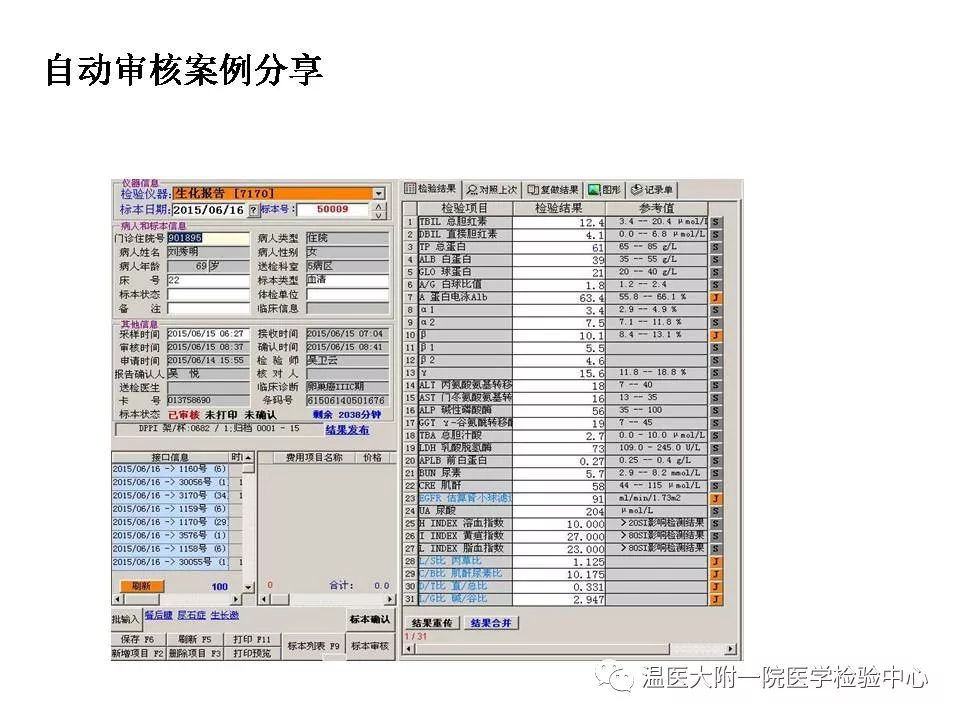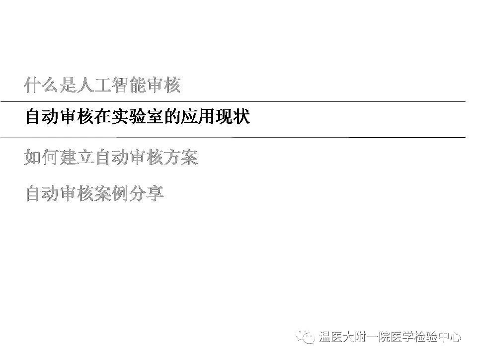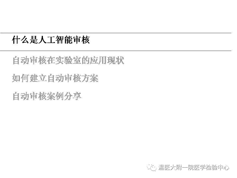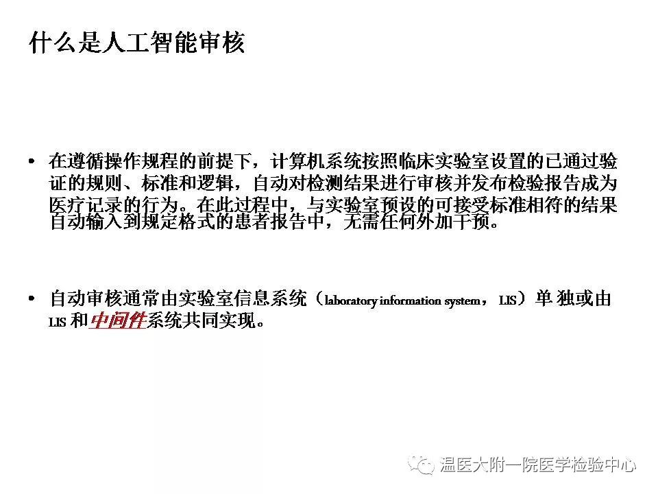2018年11月28日晚18:00,温州医科大学附属第一医院医学检验中心举行了2018年度第9次科室业务学习,本次业务学习的讲者是杨建荣老师,讲的是流水线自动化审核的相关内容,具体培训内容筛选精简后如下: