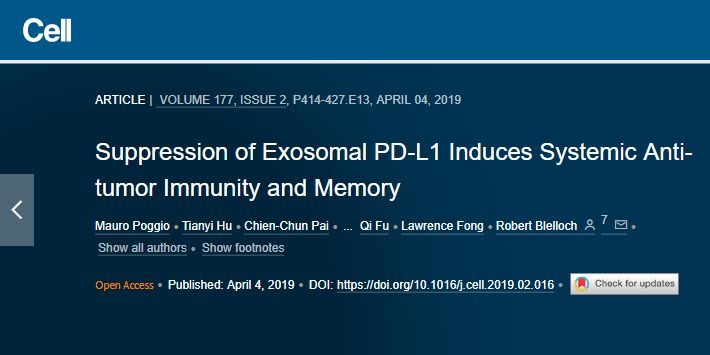 去年8月,由宾夕法尼亚大学文理学院生物学系郭巍教授、宾夕法尼亚大学病理学和实验室医学徐小威教授通力合作发表在《自然》杂志上的研究首次证实,不仅仅只有癌细胞表面携带有PD-L1,癌细胞的外泌体,其表面同样也携带有PD-L1! 外泌体的PD-L1可以和T细胞直接结合并抑制T细胞的功能,这正是许多免疫治疗失败的原因。