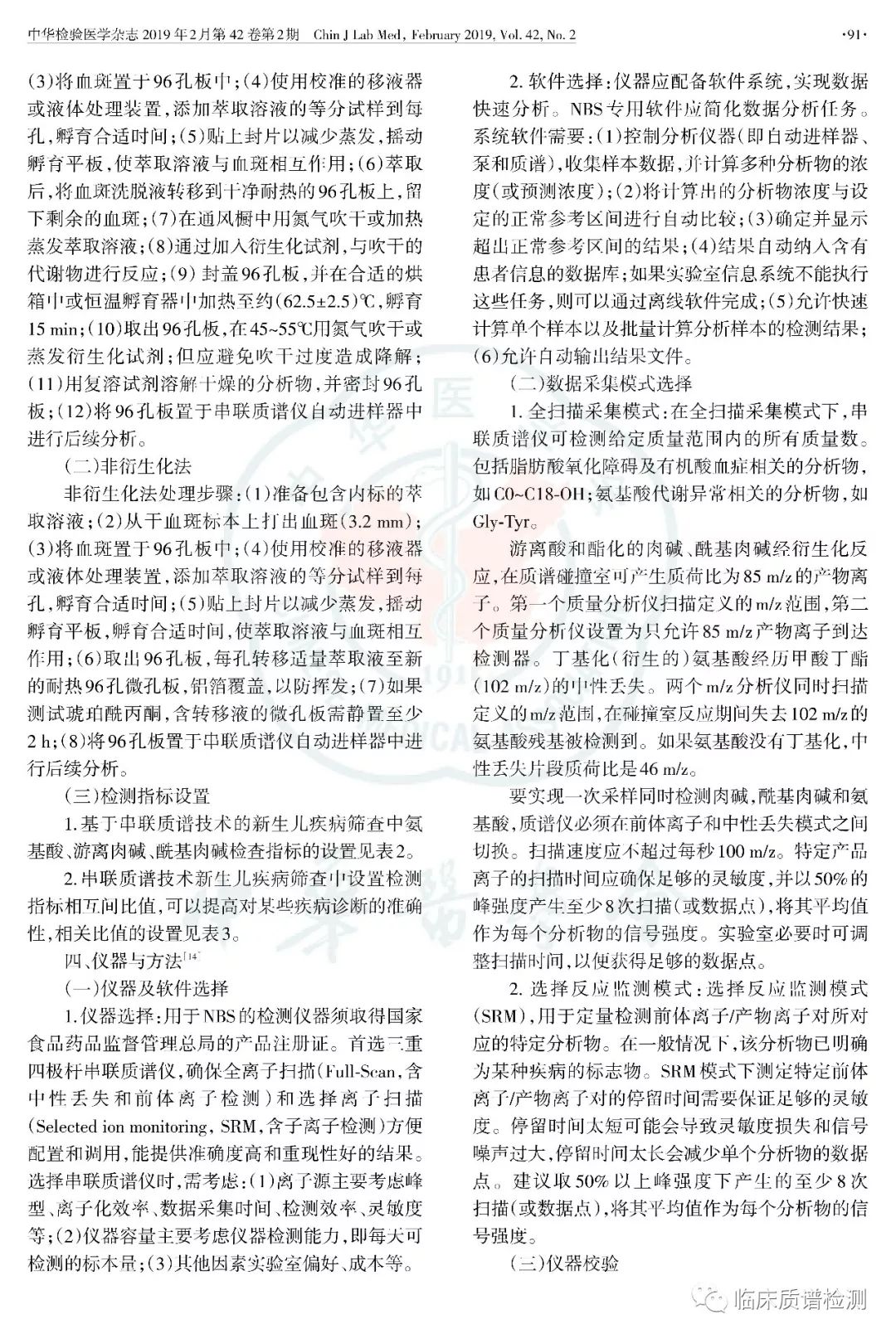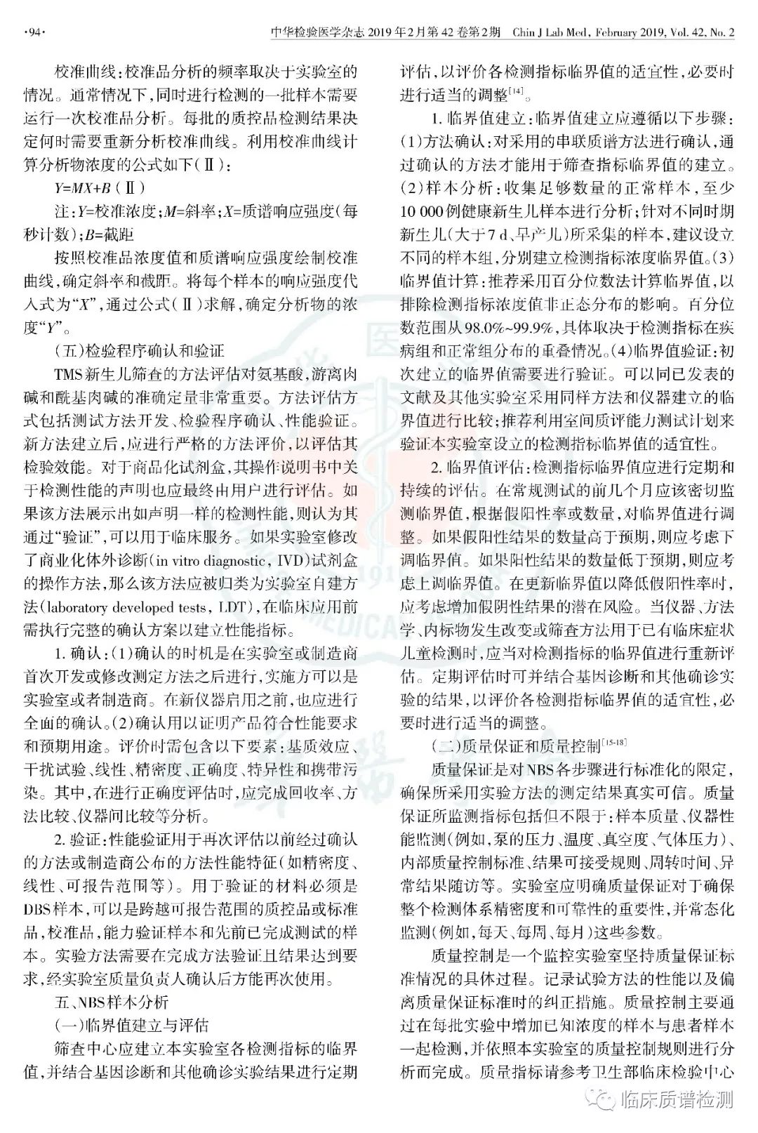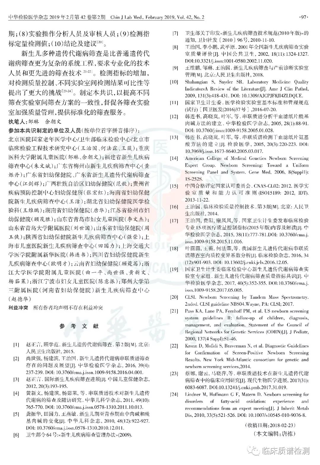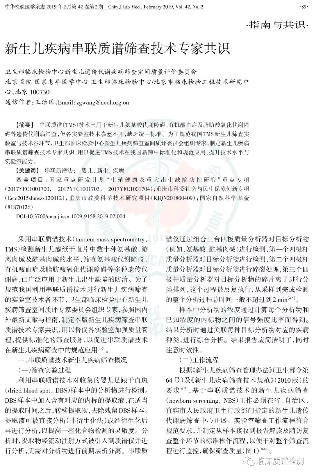 串联质谱(TMS)技术已用于新生儿氨基酸代谢障碍、有机酸血症及脂肪酸氧化代谢障碍等遗传代谢病筛查,但各实验室技术参差不齐,缺乏统一标准。为了规范我国TMS 新生儿筛查实验室与技术各环节,卫生部临床检验中心新生儿疾病筛查室间质评委员会组织专家,制定新生儿疾病串联质谱筛查技术专家共识,用以促进TMS 技术在我国新筛中标准化和规范应用,提升技术水平与实验室能力。 |