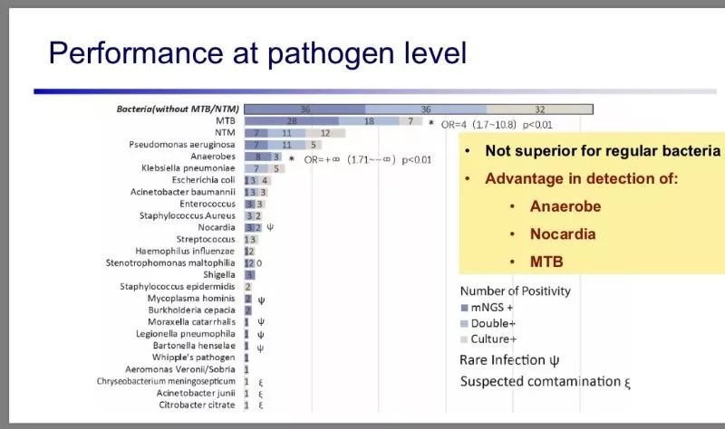 4. 抗生素对mNGS的影响远小于传统细菌培养方法,同时mNGS方法52.7%的敏感性要远高于传统培养方法的34.2%。