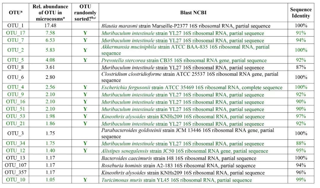 附件表1. 小鼠结肠微生物组主要OTU的捕获分选情况