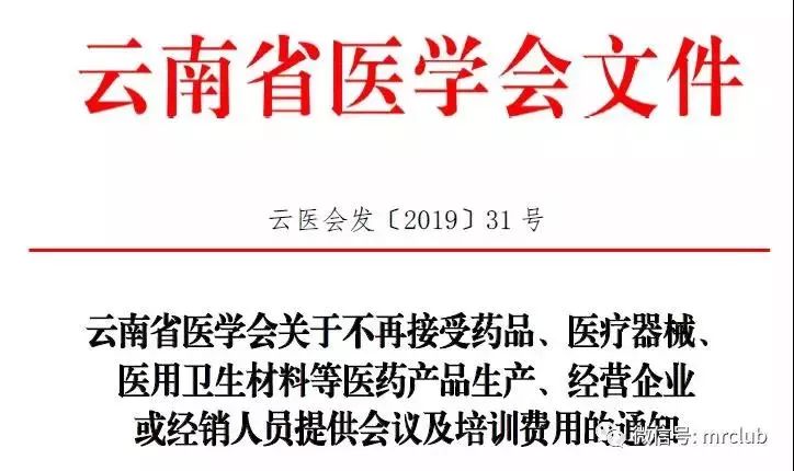 2019年全国第一省,全省医学会公开表明不再接受药械企业赞助!药械企业的学术推广,正在面临更加严厉的合规监管! 4月17日,据”医药代表“公众号消息,云南省医学会下发了《关于不再接受药品、医疗器械、医用卫生材料等医药产品生产、经营企业或经销人员提供会议及培训费用的通知》(以下简称《通知》)。 《通知》明确此次文件是根据云南省卫健委等10厅局委《关于转发国家卫生健康委、工业和信息化部等9部委局2018年纠正医药购销和医疗服务不正之风专项治理工作要点的通知》(云卫医发〔2018〕24 号)制定的。 其中明确要求:自4月16日起,云南省各各专科分会,其中包括医疗机构及行业协会、学会等社会组织,不再接受药品、医疗器械、医用卫生材料等医药产品生产、经营企业或经销人员以各种形式给予的回扣及提供会议及培训的费用。 也就说云南省所有的医学会将不再接受任何形式的药械企业赞助! 一般情况下,药械企业赞助学术会议会有以下6种常见模式,而云南省此次则是把包括这6这种形式在内的药械企业赞助全部拒之门外! 很多盟友可能要问,那学术会议所需费用从何而来呢? 《通知》也明确:学会召开学术会议和举办培训班采用收取参会人员培训费的形式进行,并严格执行会议预算报批审核制度。 这样的收费模式不知道效果会如何呢? 一直以来,业界对药械企业赞助的学术会议,甚至是顺带旅游,是存在一定的争议。有投反对票的,也有支持的。 但是是自央视在2016年底曝光药品回扣事件后,个别地方在“封杀”药械代表后再升级,从不准进医院,升级成不准医生参加企业提供的学术研讨会。 而在近期,各省卫健委对变相赞助学术会议甚至直接封杀! 今年年初,广西省卫健委就要求制定《广西卫生健康系统行风建设实施意见》,明确规定: 严禁医务人员参加由药商、医疗设备供应商赞助差旅费的学术活动等,督促指导医疗机构落实“九不准”。 在广西自治区之前,黑龙江卫健委在发布的《黑龙江省医疗卫生机构医药购销领域商业贿赂处理办法(试行)》中也同样规定:医务人员接受医药生产经营企业及其代理人提供的国内外各种名义旅游、考察、娱乐性消费及变相学术会议等行为属于商业行贿。 相比较黑龙江省的规定,广西自治区的规定更为详细,直接明确所有医药、医疗设备供应商变相赞助学术会议都将被封杀,医务人员严禁参与! 对于此类规定,当时有医疗器械行业人士表示怀疑:企业如果不出钱赞助学术会议,中华医学会及下属的各地协会如何开展学术会议? 此次云南省医学会发布的《通知》似乎就间接回应了这一问题,但最终效果如何还有待观察。 毫无疑问,作为经典的学术推广模式,赞助学术会议将会受到严格管控!业内人士普遍认为,随着医药监管政策的不断收紧,未来药品器械营销模式将被彻底颠覆! 自2018年1月1日起,新版《反不正当竞争法》正式实施,商业贿赂被重新定义:买卖双方主体之外的第三方,帮助买方购买或者帮助卖方销售,从而获取一定利益的行为。 其中对商业贿赂将从重处罚:“处十万元以上三百万元以下罚款”,处罚额度比旧版提高了10-15倍。 从2017年开始,在工商依法查处医药企业商业贿赂行为,“赞助学术会议”也被盯上了。 2018年1月,上海青浦工商对乐普医疗因支付专家讲课费被认定为商业贿赂行为,上海青浦区市场监督管理局处以了15万元的罚款。 这起案件被判定为”商业贿赂“的核心在于: 在此之前,这种药械企业与行业协会一同举办会议,在业内司空见惯。而上海青浦工商的这则行政处罚决定书让行业对学术推广产生了怀疑,显示出现在对于商业贿赂的方面的反腐正在以更加严格的形态推进,而且对于任何可能存在的方式都会进行稽查!