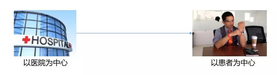 3、商业模式演化的本质——由交易价值到使用价值 一手交钱一手交货,是交易行为。终身使用或伴随则体现的是一种使用价值。比如GE的发动机引擎,不是卖给波音,而是安装后凭借传感器跟踪记录,按照飞行里程数收费,当然也包括了跟踪维护等。又如国内一些的重工企业,推土机卖不掉的时候,就把机器免费借给施工队使用,通过每次挖掘的面积收费。实际上很早之前,齐鲁医院有一款名为Holter的移动24小时心电监护仪,医院根据监护后的图像,通过使用价值收费。在未来在人工智能的场景下,医疗装置、设备都可以参照这种方式,将交易价值转为使用价值。 1、医疗诊断场景的变迁 在人工智能和数字化转型过程中,医疗场景的变迁在于从以医院为中心转化成以患者为中心的检测;从大型实验室转移到床旁、急救车、现场的检测;从大医院转移到小医院、社区、乡镇的卫生院,最后到家庭的检测。