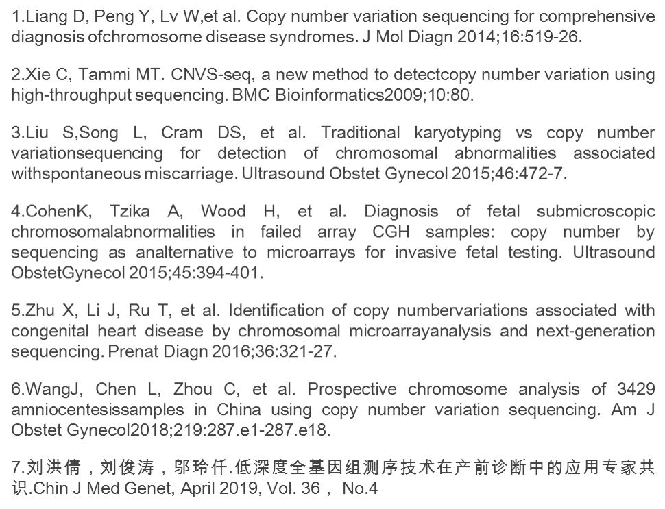 2019年4月10日,《低深度全基因组测序技术在产前诊断中的应用专家共识》(以下简称《共识》)发布,明确指出CNV-seq可以作为一线产前诊断技术[7]