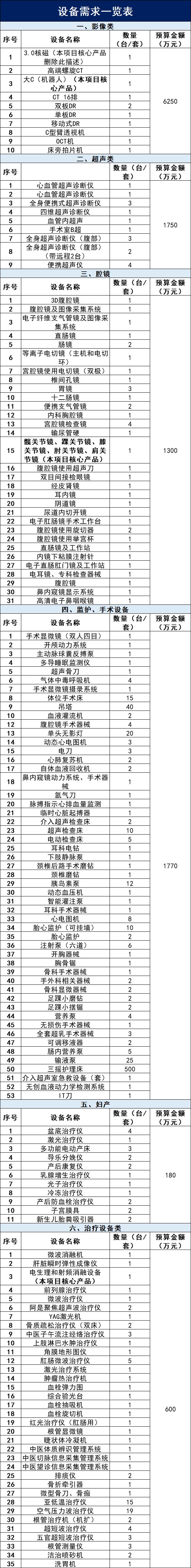 第六师医院改扩建项目(一期)医疗设备采购,总预算金额3.1亿!涉及影像、超声、手术监护、检验、信息化等十四大类医疗设备采购!