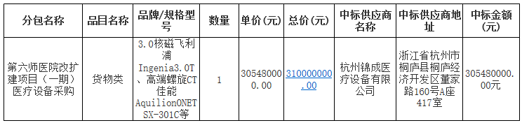 最终杭州锦成医疗设备有限公司以3.0548亿元中标!公开资料显示,杭州锦成医疗设备有限公司成立时间为2018年7月,成立时间不到一年,注册资金500万元,经营范围为销售、维修:第I类、第II类、第III类医疗器械;医疗器械技术咨询服务。