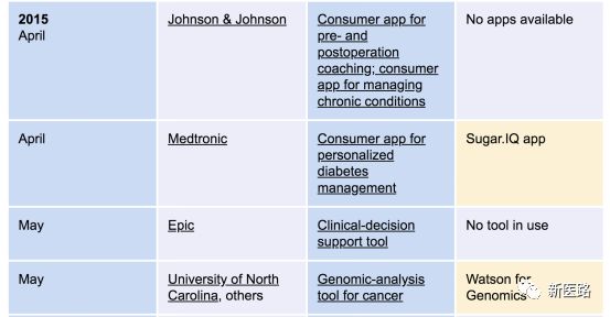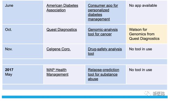 下表为IBM 在医疗方向专案与目前的进展: