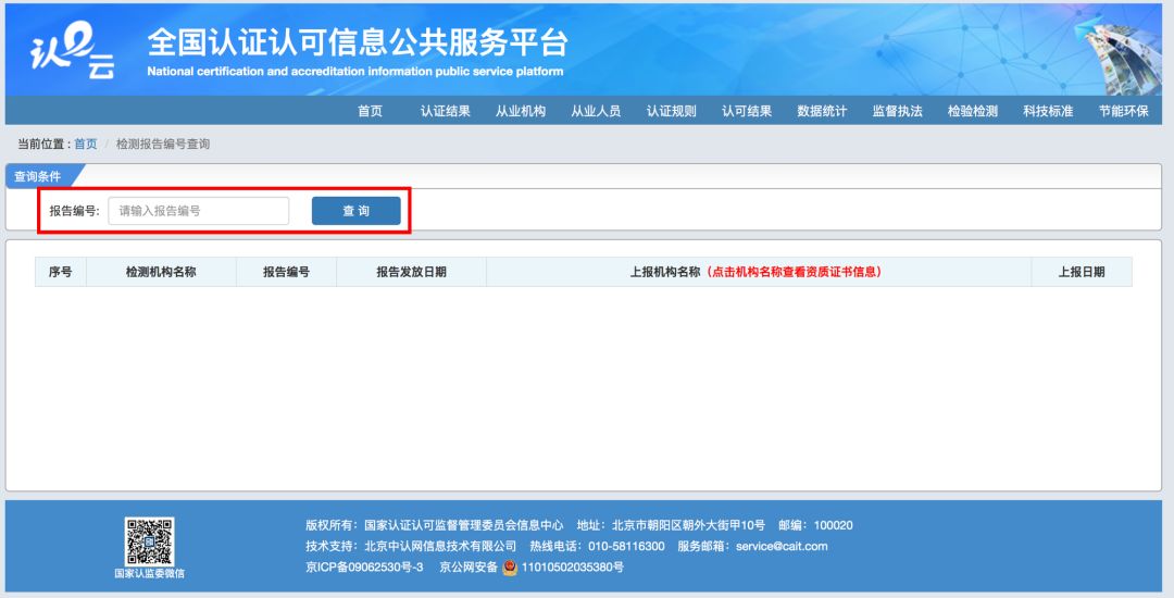 为加强检验检测机构监管,便于社会查询和监督,市场监管总局向社会提供检验检测报告编号有效性网上查询服务。即日起,社会公众可通过市场监管总局网站(www.samr.gov.cn)的“服务”栏目进入—我要查—认证认可检验检测板块下“检验检测报告编号查询”界面,输入检验检测报告编号,查询出具该报告的时间及对应的检验检测机构信息,进而可判断相关检验检测报告的真伪。 目前,系统支持查询2016年以来全部有效检验检测报告的编号,以及相关检验检测机构的基本信息。 鼓励社会各界对检验检测机构及其出具的检验检测报告进行监督,发现违法违规情况或虚假、欺诈情况的,可以向当地市场监管部门或者检验检测机构资质认定许可部门反映。 查询步骤 ▌Step1 ▌Step2 ▌Step3 ----End---- |