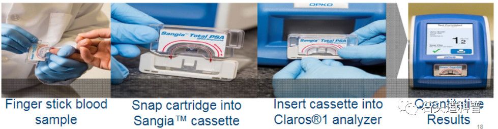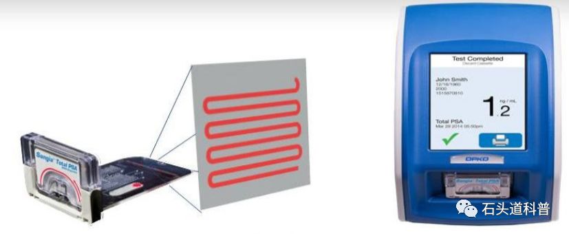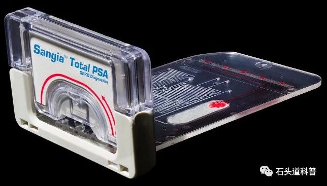 微流控芯片技术 微流控芯片是一种在微纳米尺度下控制流体的技术平台。在2006年的时候,《Nature》出了一期专刊专门报道微流控领域的现状和未来的发展,使得微流控成为研究界和产业界大热的技术。“十三五”时,国务院印发的国家创新规划明确提出“突破微流控芯片、单分子检测、自动化核酸检测等关键技术,开发全自动核酸检测系统、高通量液相悬浮芯片、医用生物质谱仪、快速病理诊断系统等重大产品,研发一批重大疾病早期诊断和精确治疗诊断试剂以及适合基层医疗机构的高精度诊断产品,提升我国体外诊断产业竞争力。” OPKO简介 OPKO Health是一家专注于诊断和药物的医学测试和药物公司。尽管没有在国内上市,OPKO在国内却以欧普科诊断有限责任公司进行了专利布局。OPKO于2011年10月13日收购了Claros Diagnostics,正式成立微流控诊断设备的研究与开发。三个月后,收购了Arctic Partners Ab Oy,获得基于激肽释放酶(hK2)的前列腺癌诊断测试。2014年,OPKO基于上面两个技术开发了4KScore测试,通过测定fPSA、tPSA、iPSA、hK2四种标志物,结合年龄、直肠指检(DRE)等结果,综合判断病人得前列腺癌的风险。该法能够准确地用于预测癌症在未来20年内传播到其他身体部位的可能性并指导患者护理决策。2019年,OPKO获得FDA批准使用Claros®1分析仪进行POC Total PSA测试。 Claros®1 PSA微流控芯片简介 Claros Diagnostics于2004年成立,主要从事微流控POC诊断设备的研发,创始人是哥伦比亚大学的Samuel Sia教授。Lab Chip 有一篇Samuel Sia教授写的商业化微流控诊断设备的经验总结文章,个人认为是非常好的一篇论文(Lab Chip, 2012, 12, 2118-2134)。Claros平台包括一个小型血液收集装置,盒式组件和一个手持的便携式仪器。其第一个商业产品旨在检测与前列腺癌相关的蛋白质标志物,后续还会提供梅毒,艾滋病毒和丙型肝炎等性传播疾病的检测。Claros Sangia PSA测试于2019年获FDA的批准后,成为第一个用于PSA的床旁诊断设备,可以在患者身边提供PSA测试结果,例如在医生办公室。 Claros® 1 PSA微流控芯片使用步骤