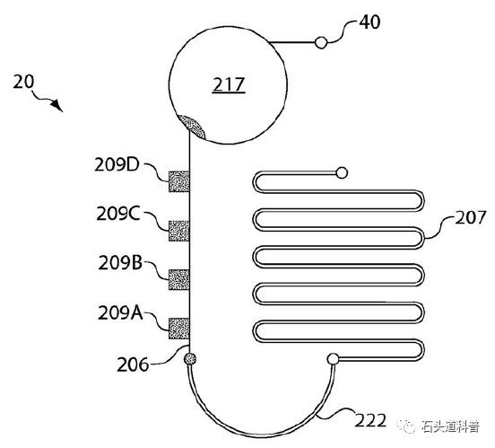 样品收集器收集来自手指针的血样并填充样品收集器。样品收集器连接到盒式组件,然后将其插入Claros 1分析仪以完成测试。在Sangia Total PSA测试盒上运行的每个样品都包含单独的阳性和阴性对照检查,通过Claros 1分析仪在10分钟后报告定量测试结果。 Claros® 1 PSA微流控芯片原理分析: Claros平台包括一个小型血液收集装置,盒式组件和一个手持的便携式仪器,下面分别做介绍。 完整的芯片图如下: 血液收集装置: 血液收集装置220内含有U形毛细管222,在接触到血液样本时,能够利用毛吸力自动吸取血液样本到管道中。收集了血液样本后,可以顺着202插口插入盒式组件组成完整的微流控芯片。该装置创新性的一点是毛细管222在插入202插口时,能够和组件内的微流控管道连接,行成微流控管道的一部分。 盒式微流控系统: 微流控内部的管道系统可简示为下图。U形222毛细管与管道207和206连接后,行成完整的微流控通道。第一通道206和第二通道207在盒子首次使用之前存储用了于处理和分析样本的试剂(206为金纳米修饰的PSA检测抗体,207为银染试剂)。209有四/五个检测区域,分别对应着阴性对照、阳性对照、检测区和内控区,分别标记了相应的捕获抗体。217为废液收集区。40是负压接口。 完整的芯片管路当然比这个复杂,但基本都是在这个基础上进行扩展。如下图所示,是Sangia Total PSA测试盒的管路图。简单来讲,其本质就是把207管道分成两路分别装载银盐溶液和还原溶液。感兴趣的可以结合照片和专利图进行分析,也可私下和我讨论。 便携式仪器: 便携式仪器主要包含蠕动泵系统、温控系统、信号读取系统、芯片检测系统和标签码读取系统。详细可参考PCT/US2011/032685专利。 总结 作为PSA检测的第一款微流控POC系统,Sangia Total PSA并没有采取目前大热的化学发光,而是采用了技术难度更为简单的银染信号放大。经过技术分析,该法和免疫层析试纸条其实很类似,结合银染试剂放大金标抗体信号进而实现了PSA的定量测试。和很多朋友聊到微流控诊断设备,大部分都在抱怨稳定性和准确性较差。我想说的是,作为一个新的技术平台,它的很多配套设备都需要这些企业进行攻克,在这个过程中如何选择合适的指标和技术路线具有很大的挑战性。也许再过几年,随着相关配套企业的成熟,微流控总会在体外诊断市场占据它应有的地位。 |