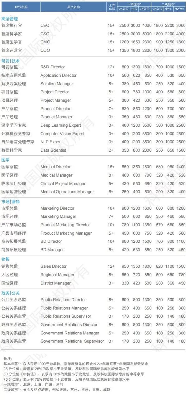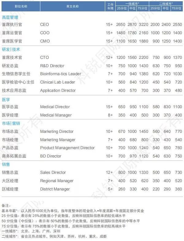 近期,科锐国际发布了《2019人才市场洞察及薪酬指南》,其中也包括医疗行业。同比2018年行业整体薪酬保持7-8%左右的稳定增长,你知道医疗行业什么岗位最挣钱吗?你有没有达到及格水平,一起来看看吧: 据了解,该榜单(总榜)制作历时75天,对近4000家企业(其中外资占比60%,民营30%,国企、政府、非盈利组织10%)及科锐国际信息库中的200,000余名中高级管理及专业候选人薪资数据进行分析,60多位行业及职能资深顾问进行点评,以下是主要内容: 医疗行业职位薪酬信息 2018-2019年行业整体薪酬保持7-8%左右的稳定增长。大型外企、国内创新公司或跨行业转型企业涨幅多在20-30%,甚至更高。创业公司或跨行业转型为了增强对高级职业经理人的吸引力度,纷纷在薪酬以外提供更多股权和期权激励。数据显示,医药与器械行业薪酬整体要略高于其他医疗行业。 职位薪酬信息 — 器械设备 职位薪酬信息 — 医药 职位薪酬信息 — 医疗服务 职位薪酬信息 — 医疗大数据 职位薪酬信息 — 个体化医疗 职位薪酬信息 — 互联网医疗 |
