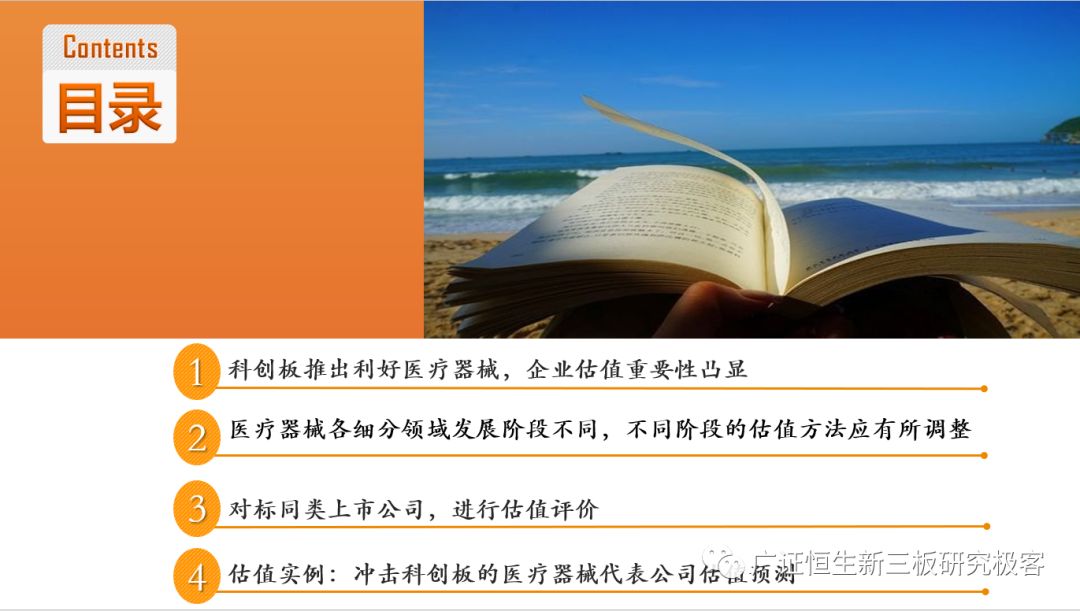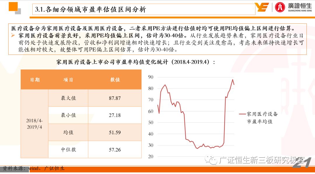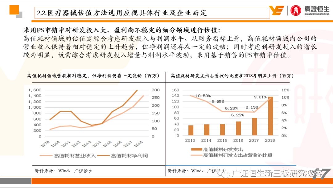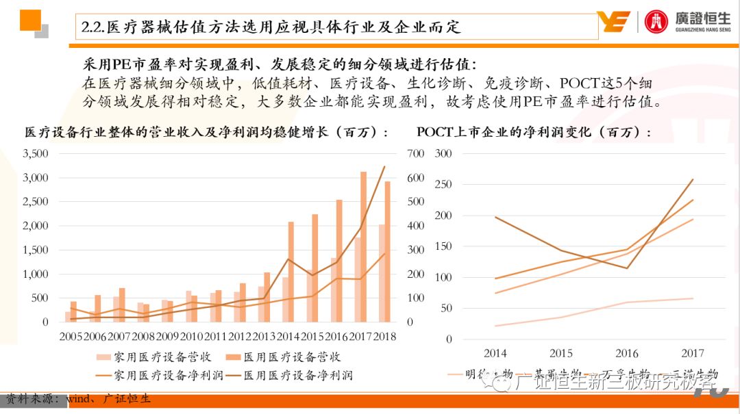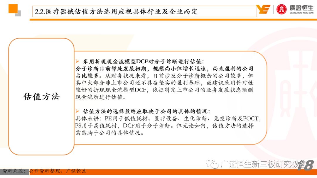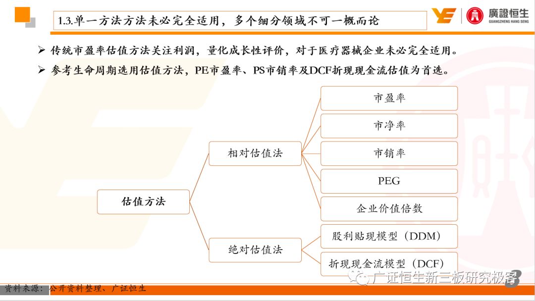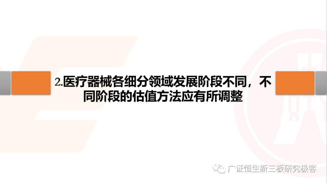 医疗器械各细分领域发展阶段不同,估值方法应视具体行业及企业特点调整。