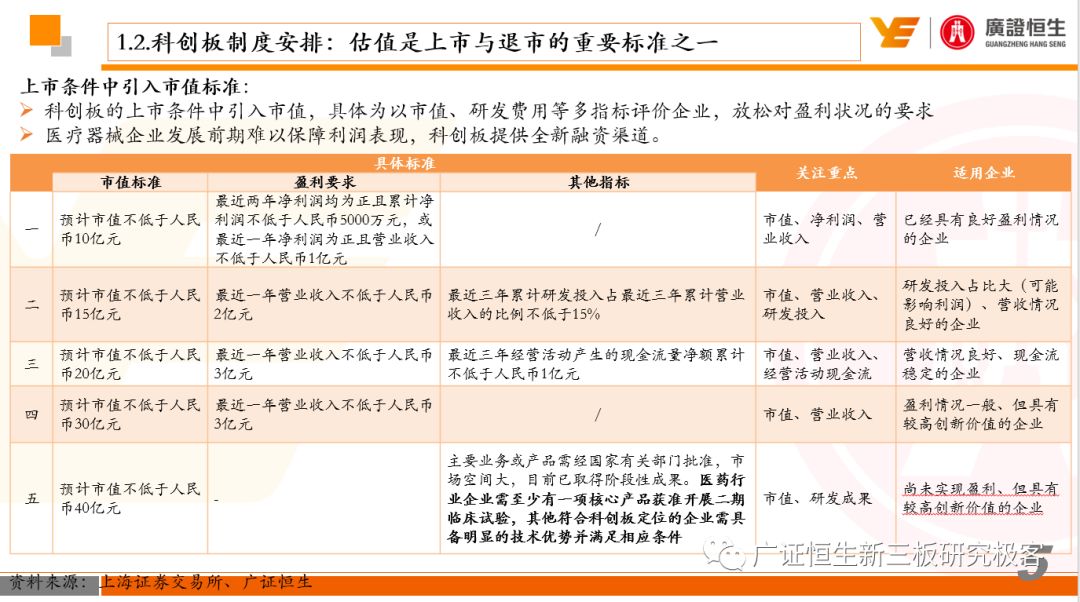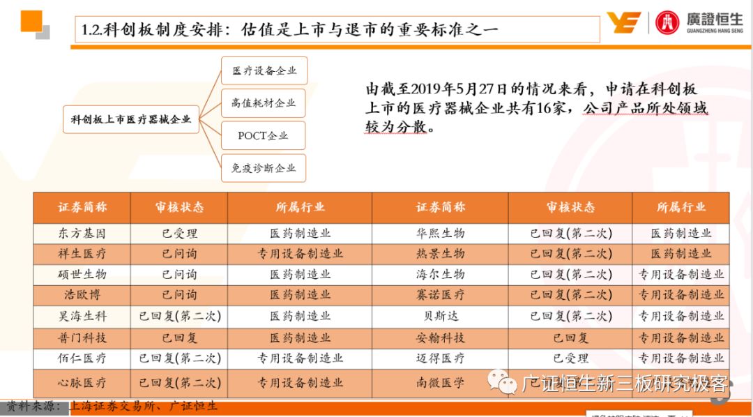 科创板的推出利好医疗器械行业发展,当前已受理16家医疗器械企业,估值是决定上市及退市的重要标准。