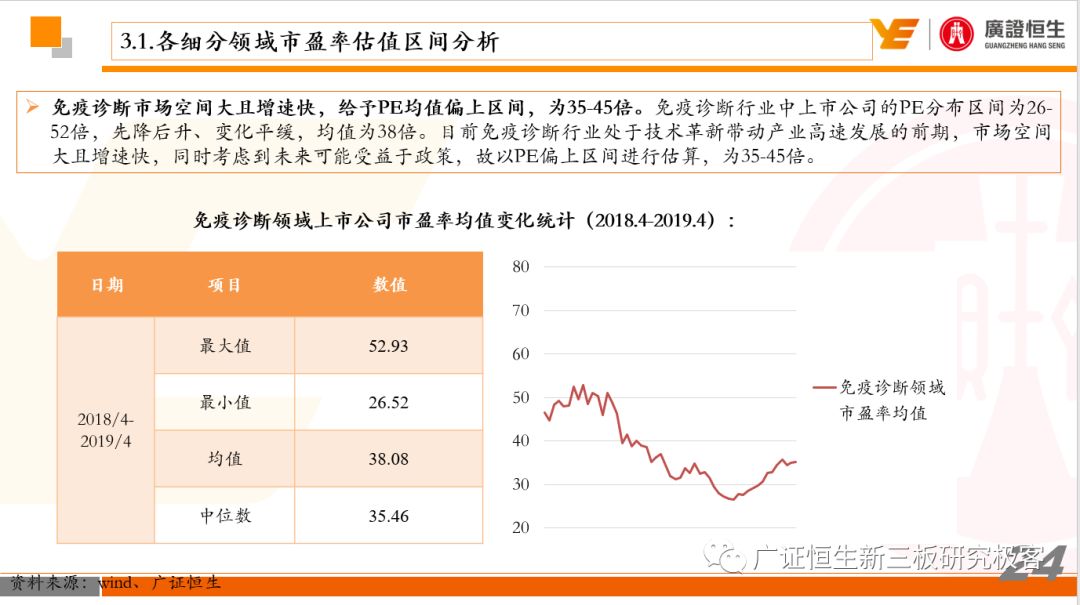 对标同类上市公司,医用医疗设备、免疫诊断、高值耗材领域分别采用45-50倍PE、35-45倍PE及17-20倍PS 进行估值。