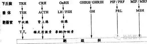 3、作用机制 激素与靶细胞的激素受体相结合,通过激活细胞信号传导通路,进而引发细胞内发生基因转录和表达等生物学效应,从而引发机体的相应生理功能。 4、激素作用的一般特征及规律 激素的作用可分为特异作用、信使作用、高效作用、相互作用。许多激素的分泌存在节律性分泌的特征,如腺垂体表现为脉冲式分布,皮质醇表现为昼夜节律性分泌,女性性激素呈月周期性分泌等。激素的节律性分泌受体内生物钟的控制。 二、下丘脑-垂体系统 1、 下丘脑神经垂体系统主要分泌的是血管升压素和缩宫素。 2、下丘脑腺垂体系统主要功能如下: 三、激素分泌的调节 1、反馈调节 下丘脑-垂体-靶腺轴在激素分泌稳态中,系统中的高位激素对下位内分泌活动具有促进性调节作用,而下位激素对高位内分泌活动多起抑制作用(反馈调节)。如下丘脑-垂体-甲状腺轴、下丘脑-垂体-性腺轴等。 2、代谢物调节 激素可以调节细胞中的代谢产物,而血中的代谢产物也可以影响相应激素的分泌水平。如血糖可以影响胰岛素和胰高血糖素的分泌。 3、神经调节 中枢神经系统可以调节许多内分泌腺的活动。 四、生理功能 1、雌激素 雌激素主要由卵巢产生,也有少量形成与睾丸和肾上腺皮质。怀孕过程中,雌激素主要形成与胎盘。雌激素主要维持女性第二性征的发展,与孕激素共同控制女性生殖功能。生理功能最强的是17β-雌二醇。检测雌激素主要用于解释下丘脑-垂体-性腺调节功能紊乱,男性女性型乳房、产雌激素器官肿瘤或增生等。另外较常见用于生育治疗监测及体外受孕中排卵时间的确定。 2、孕酮 孕酮主要在黄体细胞以及妊娠期的胎盘中形成,其浓度与黄体的生长及退化密切相关。月经周期的卵泡期几乎测不出,在排卵前一天,孕酮浓度升高。 孕酮降低可见于排卵障碍、卵巢功能减退、闭经、全垂体功能减退征、胎儿发育迟缓、先兆性流产、严重的妊娠高血压综合征等患者。 孕酮增高可见于葡萄胎、糖尿病孕妇、库欣综合征、多发性拍卵、多胎妊娠、肾上腺癌、卵巢颗粒层膜细胞癌等患者。 3、促卵泡激素 促卵泡激素从垂体的促性腺细胞中阵发性释放,在下丘脑-垂体-卵巢调节中发挥作用,控制月经周期。在卵巢中FSH和LH一起刺激卵泡的生长和成熟,进而刺激雌激素的生物合成。其浓度受下丘脑的负反馈调节控制。FSH在月经周期中期呈现一高峰,但不如LH明显,绝经期可达到高水平。对于男性,FSH起到诱导精原细胞发育的作用,浓度减低见于无精子症。FSH的检测主要用于辅助诊断染色体异常的先天性疾病、多囊性卵巢、绝经期综合征等疾病。 4、促黄体生成激素 LH和FSH相似,二者协同调节和刺激性腺的发育和功能。但LH主要刺激雌激素和雄激素的生物合成,其诱导的主要分泌物是雄激素。在睾丸的间质细胞内,LH刺激睾酮的分泌。 5、睾酮 在男性睾酮几乎全由睾丸的间质细胞合成,由LH调节其分泌,并受负反馈机制的影响。睾酮促进男性第二性征的发育,维持前列腺和精囊的功能。女性的卵巢也可以产生少量的睾酮。雄激素含量升高可引起女性男性化。检测女性体内的睾酮有助于诊断雄激素综合征,多囊性卵巢,卵巢肿瘤等疾病。检测男性体内中的睾酮含量用于诊断睾酮产生不足等疾病。 6、泌乳素 泌乳素由垂体前叶合成和分泌。泌乳素的靶器官是乳腺,能促进乳腺的生长和发育。在怀孕期间,受雌激素和黄体酮的影响泌乳素浓度升高。泌乳素的检测常用于辅助诊断经期不排卵、高泌乳性闭经和乳漏、乳腺癌和垂体肿瘤等疾病。许多药物可以影响泌乳素的分泌,如多巴胺、抗精神病药等。 7、生长激素 生长激素是腺垂体中含量最多的激素,其结构式与泌乳素相似,所以存在一定的重叠效应。生长激素可促进全身组织器官的生长,尤其是骨骼、肌肉等软组织的生长。生长激素是机体生长过程中的关键性激素,幼年缺乏可患侏儒症,分泌过多可患巨人症,成年人分泌过多可患肢端肥大症。 8、促肾上腺皮质激素 ACTH由大脑垂体前叶合成。机体受到刺激后,下丘脑分泌CRH作用于垂体,促进ACTH的合成和分泌。日间不同时间其浓度不同,早晨浓度较高,晚间浓度较低。ACTH的测定有助于诊断垂体库欣综合征,ACTH合成垂体瘤,垂体功能减退和异位ACTH症候群等疾病。异位ACTH通常认为与肺小细胞肺癌有关。 9、皮质醇 其与ACTH相同在血中的含量呈现昼夜的周期性变化。其主要的生理机能是升高血糖,抗炎和免疫抑制作用。检测患者血中的皮质醇含量可用于诊断肾上腺、垂体和下丘脑的机能紊乱与否,升高见可于库欣综合征,减低可见于艾迪生病。 10、甲状腺激素 当甲状腺受到TSH刺激后分泌大量的T4(占90%)、少量T3 和微量的 rT3 。与甲状腺结合球蛋白结合的甲状腺激素占总量的75%,以游离形式存在的浓度极低,但只要游离的甲状腺激素才具有生物活性。其具有促进生长,可以影响糖、脂、蛋白质代谢。甲状腺激素是胎儿和新生儿脑发育的关键激素,幼儿缺乏时,导至呆小症。甲状腺激素的检测可用于诊断甲状腺功能,垂体功能等。临床常见的疾病为甲亢、甲减。 本文作者:于宏伟 河北医科大学附属医院检验科 来源:检验医学 |