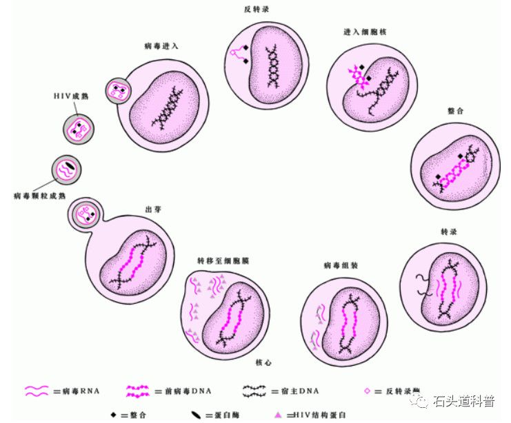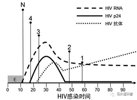 与此同时,HIV的检测还包括HIV DNA和HIV RNA的检测。关于每种方法的检测区别可见下图。图线的上升下降代表体内该种成份的增加或者减少。由此可见: