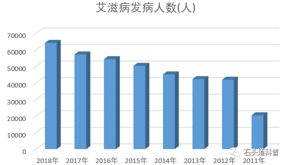 本文数据来自卫健委、国家统计局、国家数据中心。资料采集自中国疾病预防控制中心、默沙东诊疗手册、世界卫生组织WHO。 人类免疫缺陷病毒是一种感染人类免疫系统细胞的慢病毒,属逆转录病毒的一种。普遍认为,人类免疫缺陷病毒的感染导至艾滋病,艾滋病是后天性细胞免疫功能出现缺陷而导至严重随机感染及/或继发肿瘤并致命的一种疾病。艾滋病,全称是“获得性免疫缺陷综合征”(英文名:Acquired Immunodeficiency Syndrome,缩写AIDS)。目前还没有疫苗可以预防,也没有治愈这种疾病的有效药物或方法。艾滋病于1982年定名,1983年发现其病原体,是当前最棘手的医学难题之一。截止至2018年年底,中国存活艾滋病感染者约125万,其中近30%对自身患病不知情。 HIV 病毒的简单示意图 一些惊人的数据 我国各省卫健委都会通报本月该省份甲乙丙类传染病的感染人数和死亡人数,截止至2018年年底 125万 中国存活艾滋病感染者约 感染 64170人 死亡 18780人 2018年新记录 80%(18780人/23377人) 占甲乙丙类传染病死亡比例达 各个省份中,云南省HIV/AIDS患者最多,其次为四川、广西、河南、广东、新疆,六省人数占据中国大陆31省份的60%。 从历史数据上看,艾滋病发病人数和死亡人数均呈现上升趋势。更多数据可在国家数据中心查询。 艾滋病发病人数统计 艾滋病死亡人数统计 感兴趣的可以在国家数据中心查看当年所有详细数据。 感染途径统计 2010年以来的数据显示,性传播已经成为了HIV传播的主要途径,且以异性性行为传播为主,其传播比例从2006年的30.6%上升到了2011年的62.6%,2018年达到了69.6%。季节性迁徙可能加速了疫情的扩散与传播。2017年,收报艾滋病的主要传播途径以异性性行为为主,占约七成,同性性行为其次,占约二成半,母婴传播和输血传播已经基本阻断。 为什么这么难 人类免疫缺陷病毒(HIV)是一种逆转录病毒,像许多其他的病毒一样是一种以 RNA 而不是 DNA 贮存遗传信息的病毒。当病毒进入宿主靶细胞后,释放出 RNA 和酶(逆转录酶),然后以病毒 RNA 为模板逆转录 DNA。之后病毒 DNA 被整合到宿主细胞 DNA 中。反过来又作为人细胞模板,由人 DNA 模板再转录出 RNA。最终,淋巴细胞被破坏。每个被感染的淋巴细胞可生成数以千计的新病毒,这些新病毒又去感染其他淋巴细胞并导至它们被破坏。短短数天或数周,血液和生殖液中会出现大量 HIV 病毒,而 CD4+ 淋巴细胞的数量则大幅减少。 因为逆转录酶在将 HIV RNA 转录成 DNA 的过程中很容易出错,这些突变可使 HIV 更难控制,因为大量的突变可使 HIV 变成一种能够抵抗免疫系统攻击和/或耐受抗逆转录病毒药物的病毒。这导至疫苗和自身的免疫系统无法从根本上预防和控制HIV感染。 HIV的感染过程如下图所示 关于HIV和艾滋病的一些事实(世界卫生组织WHO) 1、艾滋病毒(人类免疫缺陷病毒)感染免疫系统细胞 疾病感染造成免疫系统的渐进性衰退,从而破坏人体抵御某些感染和其它疾病的能力。艾滋病(获得性免疫缺陷综合征)系指最晚期的艾滋病毒感染,出现20多种机会性感染或相关癌症中的任何一种就可确定。 2、艾滋病毒可以若干方式传播 艾滋病毒可通过以下方式传播: