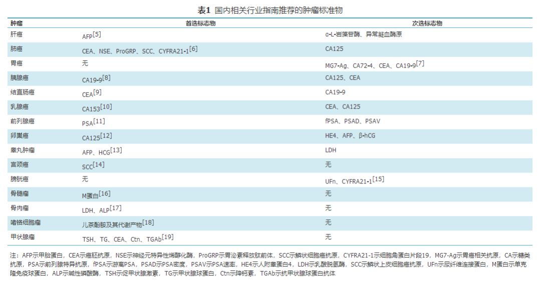 二、蛋白类肿瘤标志物参考方法研究现状 (一)临床常规检测方法 蛋白类血清肿瘤标志物的临床检测方法主要有:放射免疫法、ELISA、荧光免疫法和化学发光法等[20]。这些方法均是基于抗原抗体的免疫特异性原理,在此基础上结合放射性检测、酶活性检测、荧光检测和化学发光检测等进行目标分析物的定量检测。然而不同厂家、不同试剂盒使用的单克隆抗体针对抗原的位点不同导至测定存在明显差异,有时使用同一种抗体,也可能因抗原异质性或基质的影响而得到不同的结果。因此,设计并规范能够满足临床诊断需求的肿瘤标志物检测方法,不仅依赖于具有准确校准系统的国际标准品(international standards,IS)和国际参考试剂(international reference reagents,IRR),而且需要选择最适合的抗原抗体组合。为此,国际肿瘤学和生物标志物学会(International Society for Oncology and Biomarkers,ISOBM)协调了许多抗体研讨会,旨在对大多数主要肿瘤标志物的市售抗体和研究抗体的特异性进行表征。面对数以千计的新抗体,ISOBM建立了一个类似于人白细胞分化抗原的网络,用于表征针对"组织分化"抗原的抗体。自1980年开始,ISOBM分别成立了11个工作组,分别针对CA125、AFP、前列腺特异性抗原(prostatespecific antigen,PSA)、人绒毛膜促性腺激素(human chorionic gonadotropin,hCG)、CEA、ALP、SCC等肿瘤标志物进行了抗原抗体特异性的研究[21]。研究特异性的抗原抗体反应的前提是确定明确的分析物,例如hCG在人血清中存在6种不同的分子形式,WHO根据其特定的分子形式分别研制了参考试剂,并在2013年确定了用于测量hCG和相关分子的候选表位,于2016年进行了hCG免疫测定表位标准化的研究[22]。