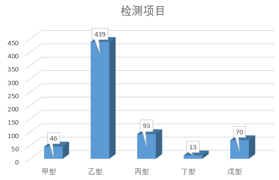 从检测项目来看,主要集中在乙型和丙型肝炎上。戊型和甲型次之。丁型所占较少,且大部分为联合检测试剂盒。
