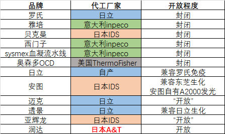 2017年开始,国内企业如安图、润达、迈克、透景、亚辉龙等逐渐开始推出自有品牌流水线系统。从技术角度来看,目前主流的进口品牌流水线由于生产厂商的“品牌保护”目的,均采用了“封闭式”设计,表面上是为了确保了实验室结果的稳定可靠,但却造成了客户难以管控成本和检测项目覆盖和扩展能力被限制的尴尬局面。国外医学实验室往往使用单一品牌的单机设备,因此选择同品牌的“封闭式”流水线也就顺理成章。而国内医学实验室往往由多品牌单机组成,如此便造成了进口品牌流水线在中国市场的窘境。 百度一下国内几家公立医院检验科仪器的配置情况,不难发现各家医院选择的品牌都呈现“万国旗”状态(如上截图)。在单机平台的选择上,“罗雅贝西”中或一或二总有绕不过的品牌。这样做的一方面实现了对不同品牌检测优势的“各取所长”,但是一旦检验科在需要增加流水线的是就会遇到麻烦!毕竟实验室自动化是发展的必然方向、毕竟哪个大牌都得罪不起。反过也显示出“罗雅贝西”封闭式流水线在国内市场的“水土不服”。与此同时,国内品牌的流水线状况如何呢?他们和进口品牌有着怎样的关系呢,先看下表: 不难发现,国内品牌和进口品牌相同之处在于都由大厂代工,其中以日立、IDS、INPECO三家为主,这样做可以确保其性能和品质。所不同者,国内品牌大多号称自己是“开放式”设计。这主要缘于国内标本量多到要上流水线大型实验室,唱主角的单机平台依旧是“罗雅贝西”。但是从上述名单中不难看出,国内品牌检验流水线的推出企业分为两大阵营,一类是以销售自产品牌为主的生产型企业(安图、亚辉龙、透景、迈克都是),另一类是以流通代理为主的实验室综合服务商(只有润达)。 |