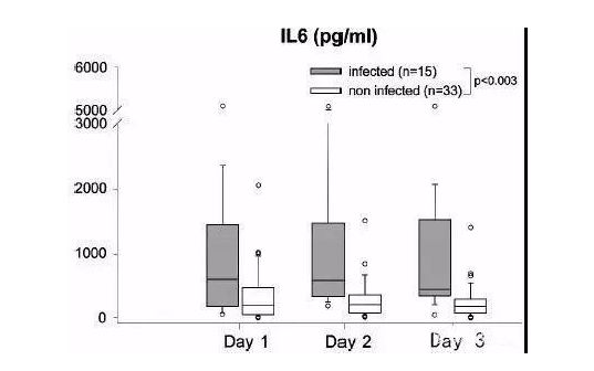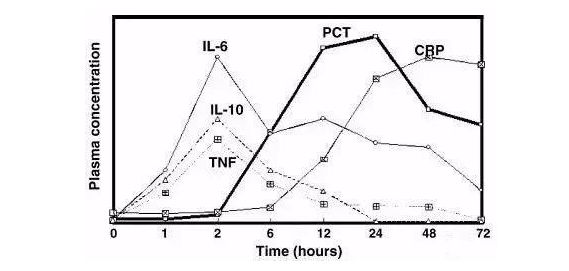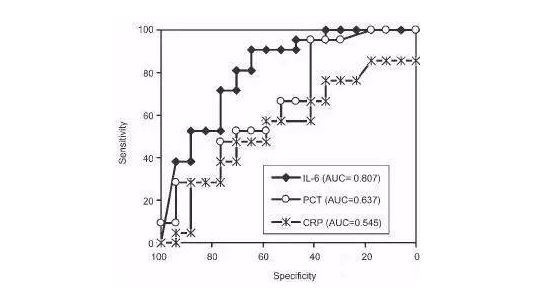 白介素6 ( IL-6) 是细胞因子网络中的重要成员,在急性炎症反应中处于中心地位,可介导肝脏的急性期反应,刺激C 反应蛋白( CRP) 和纤维蛋白原的生成。多种感染性疾病可导至血清IL-6 水平升高,而且IL-6 水平与患者预后密切相关。 ◆ 结构 白介素6 是一种多肽。IL-6由2条糖蛋白链组成;1条为α链,分子量80kd;另1条为β链,分子量130kd。α链缺少胞内区,只能以低亲合性与il-6结合,所形成的复合物迅即与高亲和性的β链结合,通过β链向细胞内传递信息。 细菌感染后,不同炎症标志物的动力学变化 ◆ 功能 IL-6是一种炎症因子,是一种功能广泛的多效性细胞因子,机体受炎症刺激后由T 细胞、B 细胞、单核巨噬细胞及内皮细胞等分泌,是炎症介质网络的关键成分。炎症反应发生后,IL-6率先生成,产生后诱导产生CRP和降钙素原(PCT)生成。如在发生感染、内外伤、外科手术、应激反应、脑死亡、肿瘤产生以及其他情况的急性炎症反应过程中会快速产生。IL-6参与许多疾病的发生和发展,其血液水平与炎症、病毒感染、自身免疫疾病密切相关,它的变化比 CRP 更早。研究显示,细菌感染后IL-6迅速升高,PCT在2h后增加,而CRP在6h后才迅速增加。 IL-6分泌或基因表达异常往往可导至一系列疾病的发生,在病理状态下IL-6可大量分泌进入血液循环,检测IL-6对于了解病情、判断预后都有非常重要的意义。 白介素6与炎症及细菌的感染程度密切相关,特别是全身性感染时升高更为明显,是诊断败血症的敏感指标。 急性坏死性胰腺炎患者,感染与非感染组不同时间IL-6水平的差异。 不同炎症性疾病,IL-6的含量具有显著性差异,细菌感染导至IL-6升高的水平显著高于非细菌感染。IL-6的水平随炎症和感染严重程度的增加逐渐升高。通过测定血中IL-6水平对评估病情严重程度及判断预后有重要意义。 脓毒症患者存活组与死亡组IL-6含量的变化 与另一个诊断脓毒症的指标PCT相比,PCT是一个更好的诊断脓毒症的指标,而IL-6能更好的评估脓毒症患者的预后,能更快的反映抗生素治疗的效果。一项研究通过对脓毒症患者治疗后的0、12、24、48、72和96小时连续测量PCT、IL-6和CRP显示,存活者组IL-6浓度快速下降,而死亡者组显示出IL-6浓度延迟下降,并且IL-6的下降的动力学用来评估患者的预后要优于PCT和CRP。同时,另一项研究也显示,对于开始发热的患者,IL-6是最好的反应患者预后的标志物,显著优于PCT和CRP。 通过IL-6、PCT、CRP的浓度 评估初试发热患者生存的ROC曲线分析 IL-6 参与许多疾病的发生和发展,其血液水平与炎症、病毒感染、自身免疫疾病密切相关,它的变化比 CRP 和PCT更早。三者相比,IL- 6敏感性高于PCT与CRP,但它特异性差于PCT,而PCT与CRP正好弥补它的不足,它们敏感性不高,但特异性高。 ★对于炎症和感染性疾病,联合检测PCT,IL- 6,CRP既可以提高感染的早期诊断率,避免漏诊,又可以减少误诊。对于脓毒症,IL-6是脓毒症发生的预警和早期诊断的指标,PCT是脓毒症(细菌性)的确诊指标,CRP是脓毒症的辅助诊断指标。 |