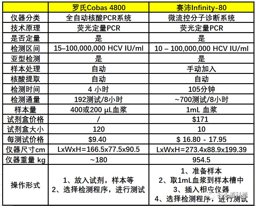 提到微流控,通常联想到的应用场景是POCT。赛沛通过模块化设计开发了Infinity系统。该系统采用与整个GeneXpert系列产品相同的模块,可根据需求定制16到80个模块,以满足不同的测试需求。本推送主要就此系统与罗氏全自动分子诊断平台进行简单对比,以及谈谈我自己对此的一些看法。 什么是微流控 微流体装置/系统通常被定义为处理少量(微米或纳升)流体(液体或气体)的组件。由于处理流体所需的大多数应用涉及生物医学和化学分析,因此微流体技术目前广泛应用于生物医学的小型化分析技术。通常涉及到流体操作的实验都可以在小型化的微流控设备中进行。 开发微流体系统的目标之一是提供从样本处理,到信号分析的全套整体解决方案。因此,微流体系统也称为芯片实验室(LOC),生物芯片或微全分析系统(μTAS)。由于微流控芯片的小型化,微流控系统可以实现许多优点,包括减少样品/试剂消耗,降低污染风险,降低每次分析的试剂成本,减少繁琐的操作,并且可能提高灵敏度和特异性,以及提高可靠性。 从应用上来说,目前微流控系统在生化、免疫、液体活检特别是分子诊断领域研究和产业化较火,国内也出现了众多相关明星企业。微流控单细胞分析、单分子检测、液体活检、液滴微流控、器官芯片和纸基微流控等都是研究非常火的领域。 微流控分子诊断系统 微流控分子诊断是目前产业化研究最火的领域之一。我个人认为主要基于下面几个原因: 1、POCT的应用需求:严格说所有的检测都有POCT的应用场景,但分子诊断比较特殊的一点是涉及到细菌、病毒及其亚型等的检测,包括筛查、确认、耐药性分析、监控感染等。这些场景往往很碎片化而又离不开分子检测。 2、分子诊断集成化、自动化、封闭化需求:PCR需要建一个标准的实验室来防止污染,以至于很难将这种方案进行大规模推广。特别是中小型医院,很多时候建一个标准的PCR实验室并不是那么容易的。微流控芯片整合了核酸提取、扩增及检测过程,反应过程处于封闭的环境中,减少了操作人员的负担及污染的可能性,实现了随时随地快速检测的需求,为医疗检验和疾病防控带来巨大的帮助。 3、相对生化、免疫,分子自身独特的特点:从技术上讲,分子诊断涉及试剂多,技术难度也更大,检测要求更高。分子诊断的市场和样本处理量相对于生化、免疫较小。尽管是大医院,也很难有类似于生化免疫的样本处理量。生化、免疫要有较好的利润,一定是在样本处理速度较高下才能保证。分子则不同,分子诊断项目多,每个项目量并不算大,通过模块化设计也能满足医院对量的需求。 4、有利润空间:分子诊断的收费普遍比生化、免疫高。尽管微流控芯片试剂和样本消耗少,但其实目前微流控诊断平台的成本还是很高的。我了解到很多做生化和免疫的微流控公司都开始拓展其它市场,如动物市场,用于增加公司的利润空间。分子诊断收费高,同时对医院来说只需要买一台仪器就能进行分子诊断也是非常有诱惑力的。 5、更适合创业:我认为目前生化和免疫一定要做平台、流水线才有较大的利润空间,这对于初创企业太不容易了。分子诊断却可以从单个项目着手,进而逐步推进。从我开始写微信公众号以来,我就发现一个现象。就是同一个项目国内的企业一定比国外的多,但是技术类别却不如国外丰富。微流控分子诊断其实很适合做创业,主要原因是需求和利润空间有,同时只要技术过硬,是可以做出非常优秀的产品的。 赛沛与罗氏对比 严格来说,微流控和全自动单机有不同的应用场景,不应该放在一起对比。但有趣的是,赛沛推出了针对大样本量的模块化整体,尝试用这种方式提高微流控分子诊断系统的处理通量。当模块化微流控系统Infinity-80遇见罗氏的Cobas 4800,详细对比会发现其中有很多值得品味的东西。 1、从操作模式上看,罗氏属于单机形式,样本和试剂装载完成后,就可以进行全自动运行。赛沛的系统需要人工加载样本,并且样本量也更大。对于大样本来说,罗氏显然相对友好些。 2、从检测性能上看,罗氏和赛沛都提供分型和定量检测。处理样本的时间罗氏为4小时,赛沛为105分钟,这点微流控确实有很大优势。尽管赛沛宣称最低检测限为10 cps/mL,但所需样本量为1mL,远大于罗氏的200 μL样本需求。 3、从检测速度上看,赛沛目前最大的平台GeneXpert® Infinity-80能够一次性完成80个芯片的自动化检测,每份测试的时间不到2小时。与罗氏Cobas 4800相比(其8小时能够完成192次HCV的病毒载量测试)至少在速度上并没有太大的劣势。 4、从仪器构造来看,赛沛属于模块化设计,因此设备共享率较低,整体仪器更大更重,相应成本也会更高。驱动80个模块的运行也是一份比较大的能源消耗,对整体环境要求个人感觉会更高。赛沛想增加更多模块的难度也更大。罗氏设备较轻,共享率高,对于扩展更大通量的单机也有很大的空间。比如现在的Cobas 6800和 Cobas 8800。 5、从成本上看,目前微流控分子诊断芯片并不占优。有份报告专门计算了赛沛每份测试的价格,大约是在16.8-17.95美元之间,相对于罗氏依然有所进步空间。 详细的对比如下表所示: 其中赛沛的计算价格信息来自于行业报告“PUTTING HIV AND HCV TO THE TEST”。可在公众号回复“HCV报告”下载。该份报告详细列举了目前HIV HCV病毒检测的所有公司及原理介绍。具体如下图所示。 |