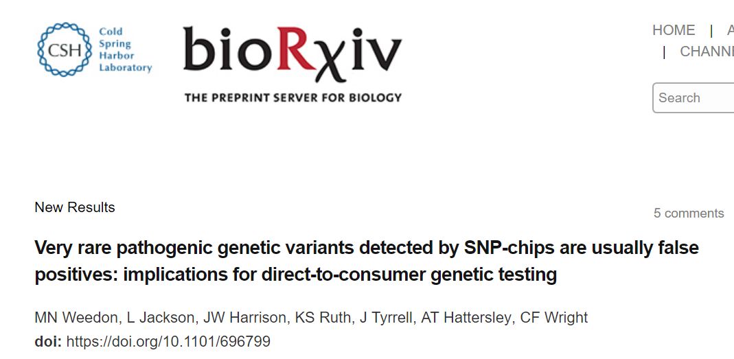 自2000年科学家宣布人类基因组草图的绘制工作完成后,越来越多的动植物、微生物基因组序列得以测定。怎样高效、快速、识别目标基因,尤其是与疾病相关的基因成为科学家的共同课题。基因芯片(又称DNA芯片)就是顺应这一科学发展要求的产物。基因芯片可同时对大量基因实现高效、快速、低成本的检测和分析,在疾病诊断、药物筛选和研发等领域有着重要应用。 因具有高通量、高效率的特点,用于检测单核苷酸多态性(SNP)的基因芯片通常用于检测个人基因组中的变异,也被称为SNP芯片。目前,我们所熟知的直接面向消费者(DTC)基因检测公司大多是利用SNP芯片进行基因检测。然而,有研究结果显示,SNP芯片在检测罕见变异时,错误率超过84%!近日,相关研究成果以预印本形式发表在BioRxiv上。 为了研究SNP芯片的准确性,研究团队评估了来自英国生物样本库49,908名参与者的SNP芯片检测数据。研究发现,SNP芯片的整体检测准确性很高,但阳性结果的可靠性会随着等位基因频率的降低而显着降低。通过分析SNP芯片检测的108,574个SNP,其对杂合基因型的敏感性、特异性、阳性预测(PPV)和阴性预测值(NPV)均大于99%。但对于频率<0.001%的变体,PPV非常低。来自SNP芯片的4,711个杂合子基因型中,只有16%能够通过测序证实,罕见变异检测的错误率超过84%。对于BRCA1和BRCA2基因的致病变异,SNP芯片的总体性能指标为:敏感性34.6%,特异性98.3%,PPV 4.2%和NPV 99.9%。 英国生物样本库中SNP芯片(Axiom®或BiLEVE)的检测性能(与NGS比较) 该研究合作者、英国埃克塞特大学基因组学家Caroline Wright明确表示:“基于该研究,基因变异越罕见,检测结果越不准确。使用SNP芯片检测的罕见变异不应在未经证实的情况下报告给患者。希望这些数据能够帮助临床医生以及进行DTC基因检测的消费者。” 据悉,LivingDNA等DTC基因检测公司大多是利用SNP芯片进行基因检测。用户可自行将原始基因数据上传到第三方服务,进而推断健康等相关信息。目前,这种涉及健康信息的DTC基因检测服务项目丰富、价格低廉甚至可免费进行,并且基本不受监管。虽然DTC基因检测公司提醒用户不要把检测结果视为医疗诊断,但可能并不是所有的消费者都清楚这一点。 Wright表示:“虽然MyHeritage、23andMe等DTC基因检测公司声称使用更高精度的基因芯片,但在检测非常罕见的变异时还是很容易出现假阳性结果。” 以BRCA基因变异为例,该基因变异与乳腺癌和卵巢癌相关。目前,已知的BRCA1和BRCA2变异有数千种,并且每种变异都非常罕见。2018年3月,拥有超过1000万用户的23andMe获得美国FDA的授权,为BRCA1和BRCA2基因的三种遗传变异提供DTC基因检测。2019年5月,拥有超过1.05亿用户的在线家谱平台MyHeritage宣布扩大其DNA检测服务,并提供包括遗传性乳腺癌遗传风险的健康报告。 对于该研究,MyHeritage公司表示此前已经意识到了芯片方面的突出问题。为此,该公司研究团队开发了相关的应对措施,大大提高了MyHeritage BRCA检测的阳性预测值。研究人员将对基因检测中每种可能的致病变异进行双重检查和验证。此外,多个探针也可以提高准确性。目前,MyHeritage公司对每种BRCA变异平均使用2.6个DNA探针,而该研究仅观察了一个探针。 23andMe方面表示,在给出基因变异的识别报告之前,公司会对BRCA基因进行测序,并进一步指出消费者获得的原始基因检测数据不应用于教育和研究之外的任何目的,不应被视为医学或诊断证据。 对于基因芯片的准确性问题,未参加该研究的相关专家也发表了看法。 南加州大学凯克医学院的人类遗传学家Charleston Chiang表示:“该研究提高了人们对DTC基因检测行业潜在重要问题的认识。人们有可能得到不可靠的检测结果,进而获取错误的罕见变异信息,并不考虑任何实验室错误,这将是一个合理的担忧。” 伦敦帝国理工学院的基因组学家Philippe Froguel表示,他同意该研究提出的仅依靠DNA芯片鉴定基因变异的危险性。事实上,如果医生需要对患者的DNA进行测序以准确读取基因组,也可以在医院进行检测。当然,想要鉴定导至疾病的致病突变,唯一要做的就是开发一种高质量的基因检测方法。” 多伦多大学的遗传学研究员Frederick Roth对此表示:“这项新研究加强了人们对开发识别目标基因变异更好的遗传学检测方法的兴趣,有助于基因检测领域的健康发展。” 参考资料: 1.Very rare pathogenic genetic variants detected by SNP-chips are usually false positives: implications for direct-to-consumer genetic testing 2. Accuracy of Genotyping Chips Called into Question |