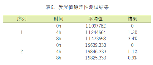 依据以上数据可见,CM-180的发光值稳定性符合YY-T 1155行业标准报批稿中要求变化不超过±5%。