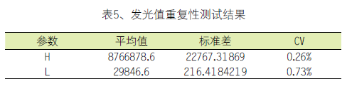 依据以上数据可见,CM-180的发光值重复性符合YY-T 1155行业标准报批稿中要求CV不超过5%。