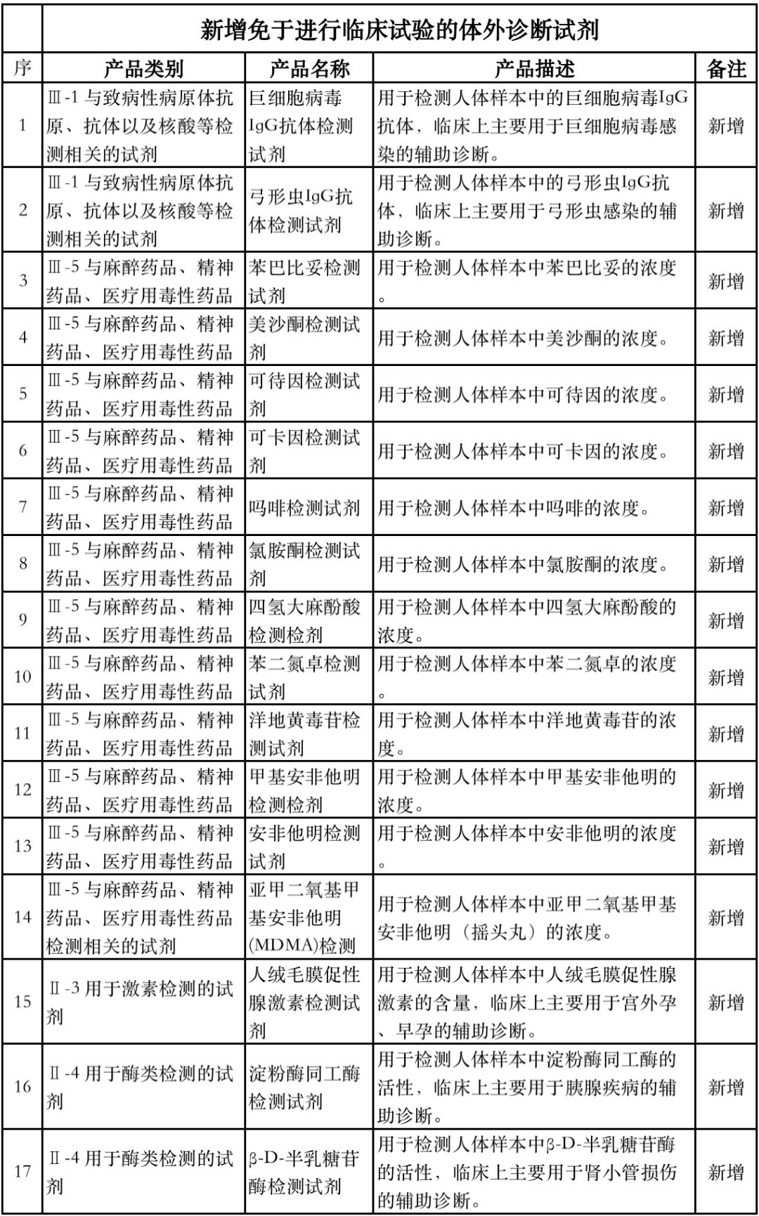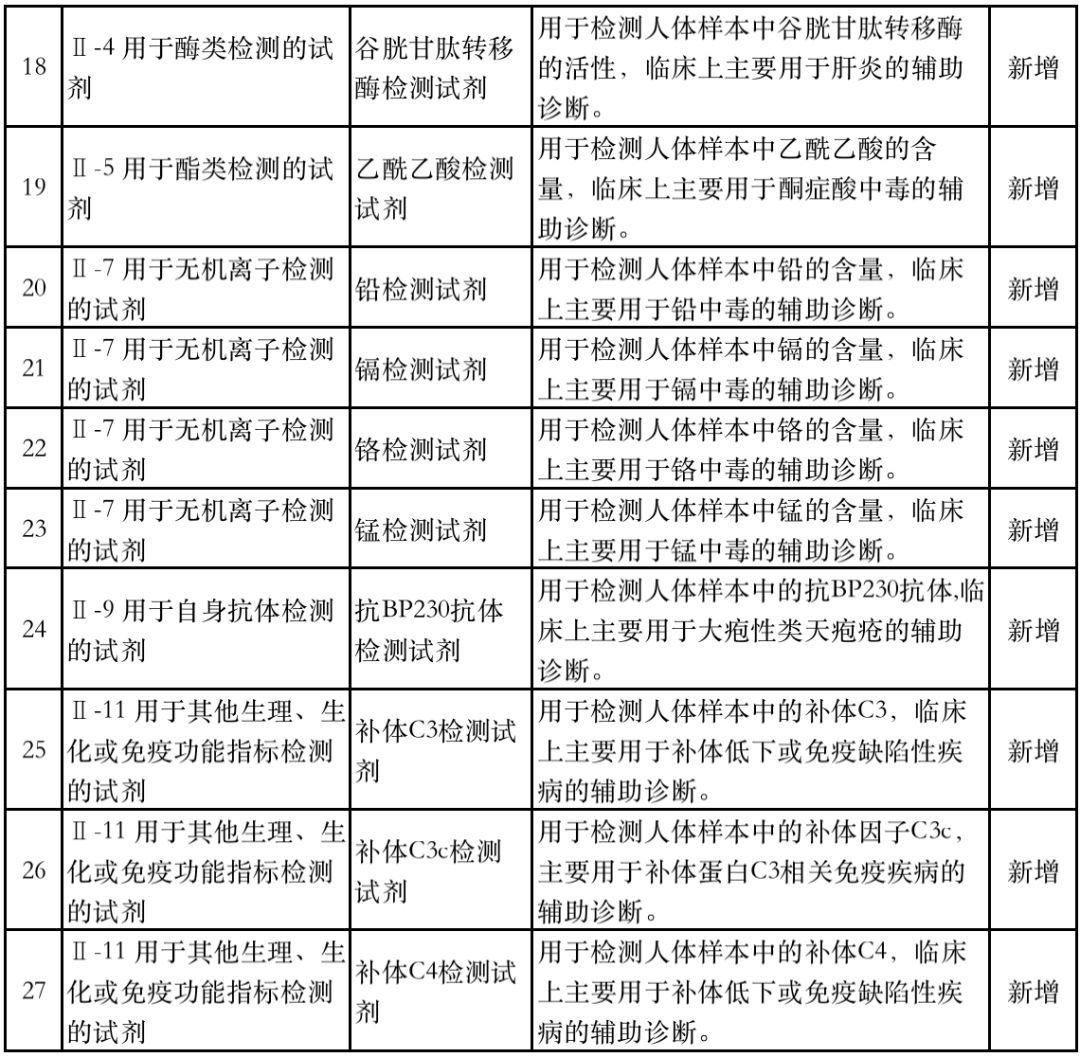 不断扩充目录,增加免于进行临床试验的医疗器械,可以有效降低成熟度高、风险较低产品临床试验方面的要求,同时减轻企业负担,使企业能将更多的精力投入到产品研发和质量提升上。 同时也有利于优化临床试验和审评审批资源,把宝贵的资源投入到临床急需和创新医疗器械产品上去,促进安全有效、风险可控的产品尽快上市。 附:新增免于进行临床试验的医疗器械和体外诊断试剂 ▲新增免于进行临床试验的医疗器械 ▲新增免于进行临床试验的体外诊断试剂 |