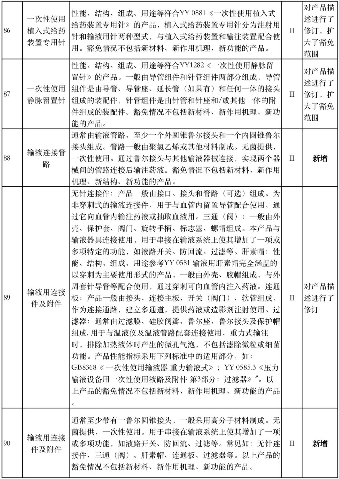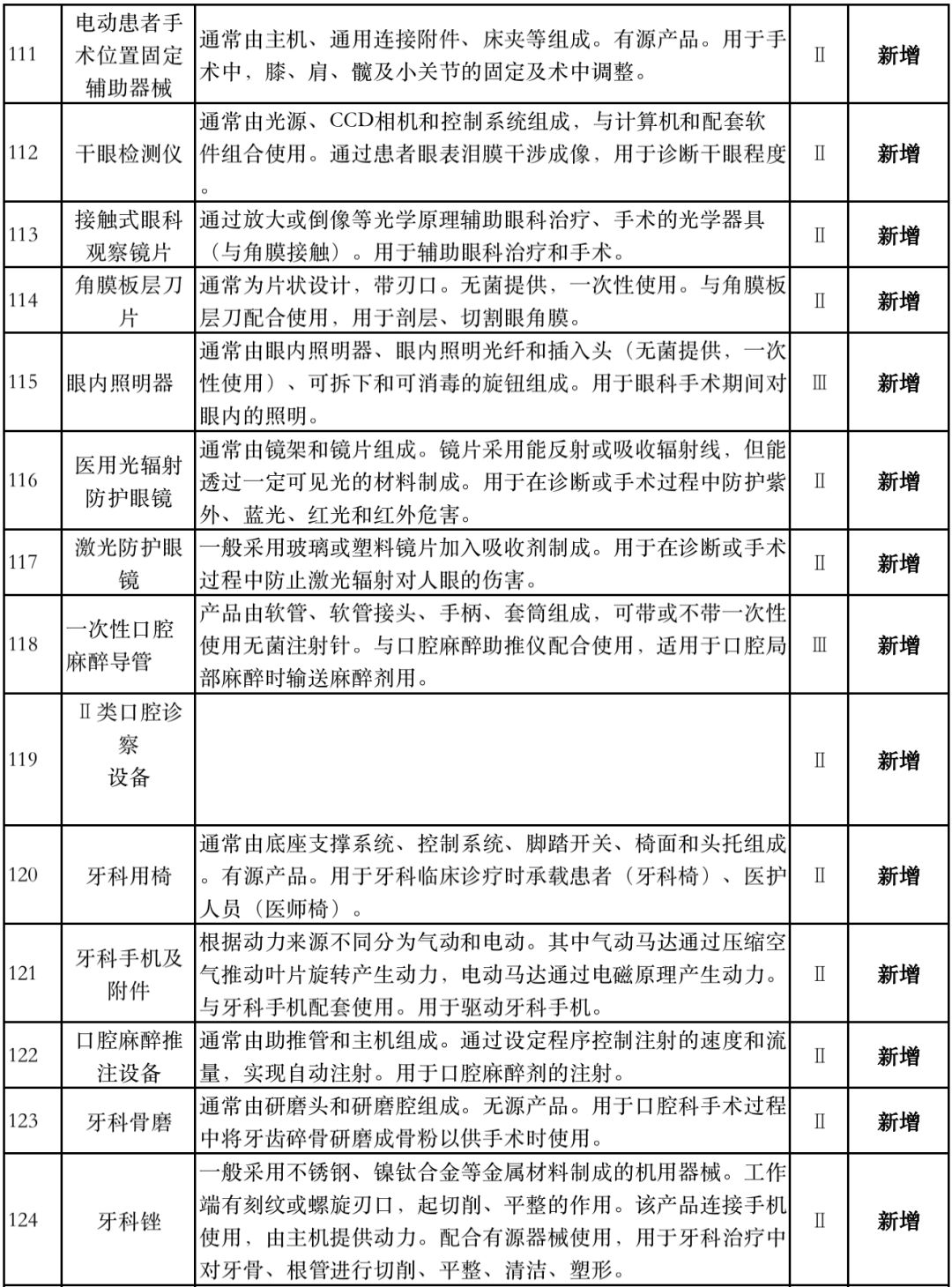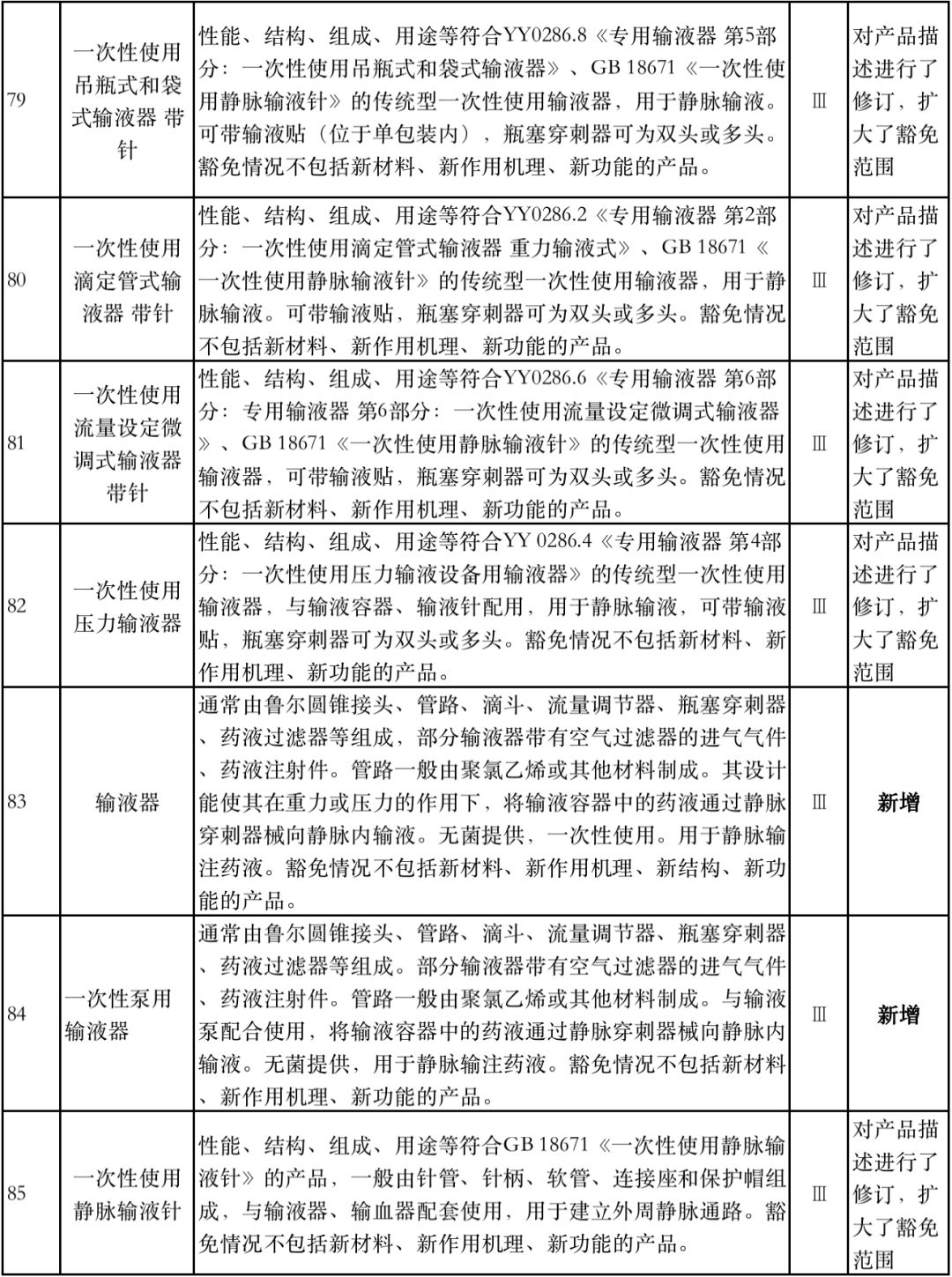 8月1日,国家药监局器审中心发布《免于进行临床试验医疗器械目录(2019年修订稿征求意见稿)》,共996种医疗器械和420种体外诊断试剂免于进行临床试验。 与2018版相比,2019版《豁免目录(意见稿)》新增142种医疗器械和27种体外诊断试剂,还对19种医疗器械扩大了豁免范围或对描述进行了修订,新增的142种医疗器械包括102种II类和40种III类医疗器械。