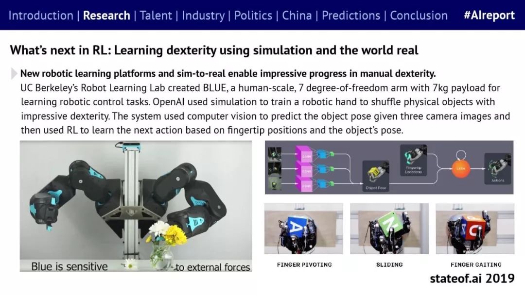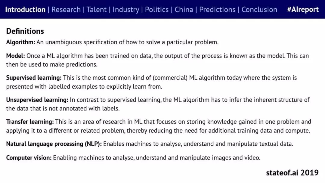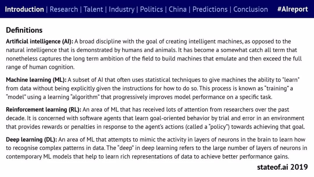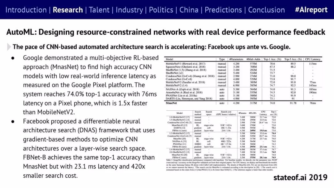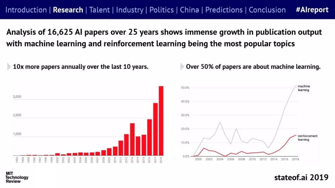 Stateof.ai发布了“2019年AI报告”。 面部识别用户体验:减少日常消费者用例的摩擦 在中国,人脸识别技术已经开始应用。人们在店内刷脸支付,在机场获得航班详情等。 中国网络巨头扩展到农牧业 阿里巴巴和京东都进入了畜牧业和昆虫养殖业,包括养鸡、养猪和蟑螂养殖。并在养殖过程中利用人工智能收集和分析数据。 中国企业AI研发支出快速增长,但总额仍然落后。中国企业的研发支出同比增长34%,但美国企业仍占全球科研支出的61%。 从数据来看,中国芯片销售和采购在快速增长,但是购买远高于销售。 在过去的3年里,一些中国工业企业40%的劳动力已经实现自动化。这在一定程度上是因为中国的机器人年装机量自2012年以来增长了500%(欧洲为112%)。但是,目前还不清楚这些安装的机器人在多大程度上运行AI软件,或者对AI的普及做出了贡献。 京东的上海配送中心使用自动化仓库机器人,每天组织、拣选和发货20万份订单,该设施仅由4名工人管理。京东的仓库数量和面积同比增长45%。 2018年有33家中国公司在美国交易所进行IPO,(比去年同期增长2倍),接近2010年的历史最高水平。2018年,美国共有190宗IPO。 中国团体拥有最多的AI专利,但2017年只有23%是“发明专利”。 91%的5年设计专利和61%的5年实用新型专利被放弃。相比之下,维护费用按照5年的美国专利的85.6%支付。 中国已经发布了比美国更多的机器学习方面的研究。 |