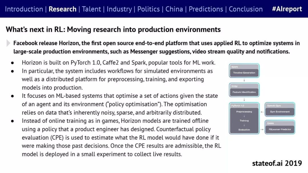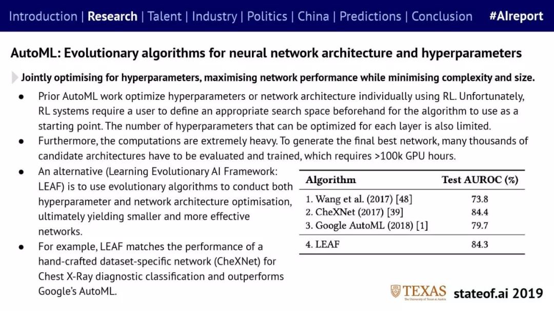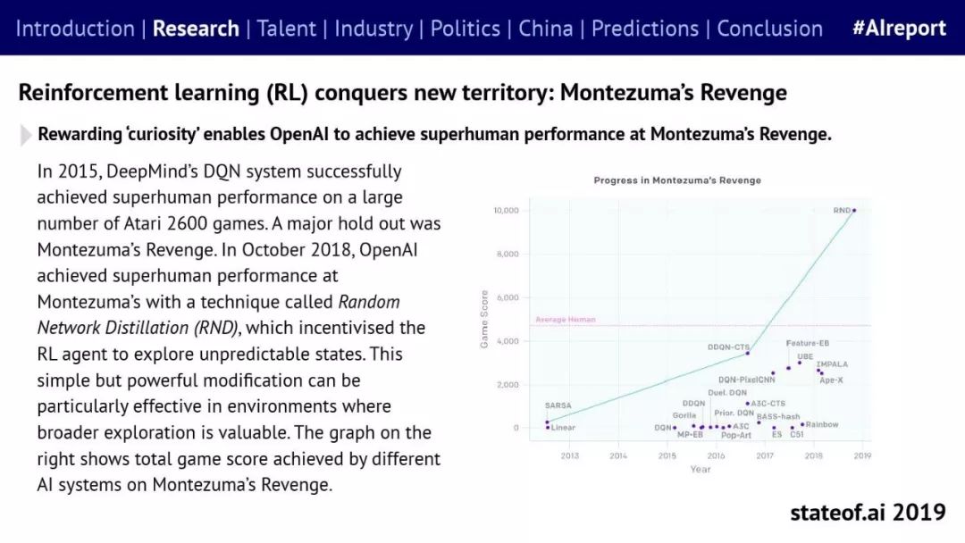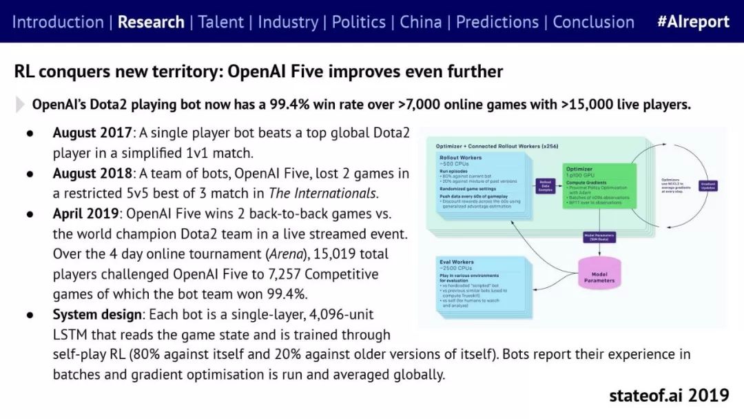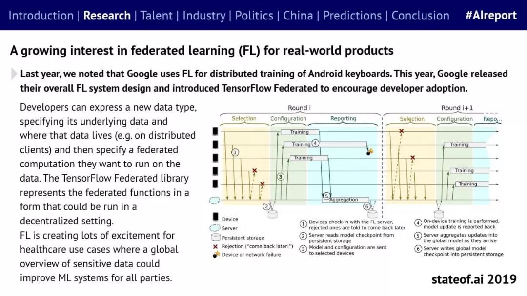 Stateof.ai发布了“2019年AI报告”。 面部识别用户体验:减少日常消费者用例的摩擦 在中国,人脸识别技术已经开始应用。人们在店内刷脸支付,在机场获得航班详情等。 中国网络巨头扩展到农牧业 阿里巴巴和京东都进入了畜牧业和昆虫养殖业,包括养鸡、养猪和蟑螂养殖。并在养殖过程中利用人工智能收集和分析数据。 中国企业AI研发支出快速增长,但总额仍然落后。中国企业的研发支出同比增长34%,但美国企业仍占全球科研支出的61%。 从数据来看,中国芯片销售和采购在快速增长,但是购买远高于销售。 在过去的3年里,一些中国工业企业40%的劳动力已经实现自动化。这在一定程度上是因为中国的机器人年装机量自2012年以来增长了500%(欧洲为112%)。但是,目前还不清楚这些安装的机器人在多大程度上运行AI软件,或者对AI的普及做出了贡献。 京东的上海配送中心使用自动化仓库机器人,每天组织、拣选和发货20万份订单,该设施仅由4名工人管理。京东的仓库数量和面积同比增长45%。 2018年有33家中国公司在美国交易所进行IPO,(比去年同期增长2倍),接近2010年的历史最高水平。2018年,美国共有190宗IPO。 中国团体拥有最多的AI专利,但2017年只有23%是“发明专利”。 91%的5年设计专利和61%的5年实用新型专利被放弃。相比之下,维护费用按照5年的美国专利的85.6%支付。 中国已经发布了比美国更多的机器学习方面的研究。 |