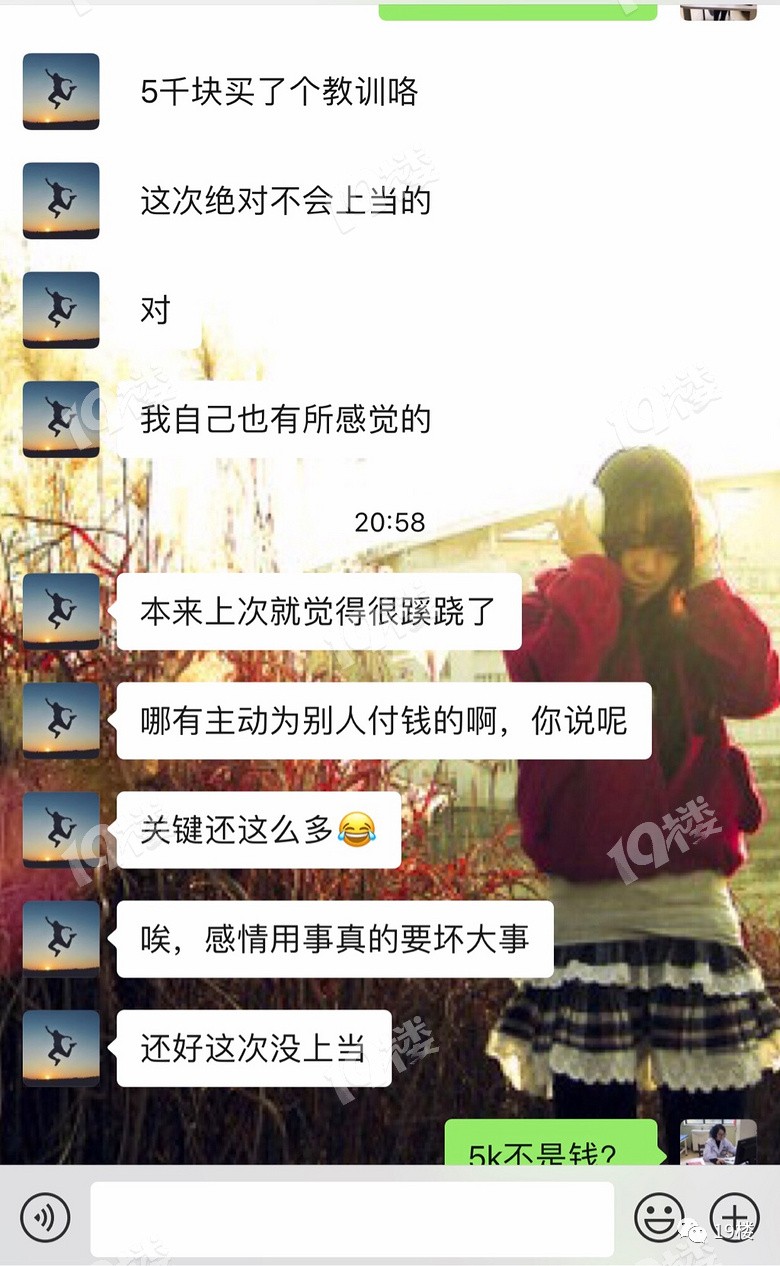 19楼网友爆料 自己追求妹子疑似遭遇新骗局 ▽ 我一个男性朋友,单身,最近喜欢妹纸。 据他说妹子是一个健身好几年,家境殷实的7分女子。但是追求她,一直模棱两可。 某次聊天中妹子说他们单位有一个基因检测,家属可以打八折,帮我朋友报名了。我朋友其实不想做的,但是妹子非常热心,帮他钱交了。朋友是个老实巴交的男子,也有点大男子主义,还是把钱主动给了妹纸。近5k。我听说过这个,但是公立医院没有这个项目,不建议做,朋友不听。 然后妹子还送水果给帮忙的主任,发给我朋友,我说你们没有确定关系,她这么殷勤,匪夷所思呀。 还非常正派的退过红包。 之后套路来了,做检查的主任告诉妹纸,我朋友检查出来不好,需要进一步昂贵检查,我朋友这个时候已经意识到可能是套路了。拒绝做,妹子又要使出主动付钱的戏码,我朋友态度坚决,不用,妹子真面目就出来了,拿不和他聊天威胁他。 套路呀。 反正我是一直劝我朋友不要去做的,之前无事献殷情,我还各种举例,还被说我腹黑,平时咖啡都不舍得喝,这次被骗了五千多。 朋友的心理路程,好在最后收手了。这个妹纸也是毛躁,拒绝马上就露出真面目,还拿不发任何一个字威胁。 追求妹子被要求做基因检测 网友们都觉得这是明显的套路 ▽ 网友热评: @天天天蓝:这真的是被妹子蒙蔽了双眼,明显的套路。 @金金:看得我笑死,小妹妹这个演技我给满分。 @欧文:和主任一唱一和的真是不得了。 @王篮子:只有我一个人觉得这个什么基因测试一点都不靠谱吗? 刮一刮口中的唾液,寄送出去,半个月左右就能从手机上获知自己的基因信息和身体秘密。 随着技术的进步以及成本下降,基因检测服务走进普通消费者的视野。那么所谓的基因检测真的靠谱吗? 实际上,据医药调研机构统计,截至2016年底,国内已有233家公司从事基因测序相关服务,至今超过一百家公司号称为普通消费者提供基因检测服务,价格从几十元到上万元不等。