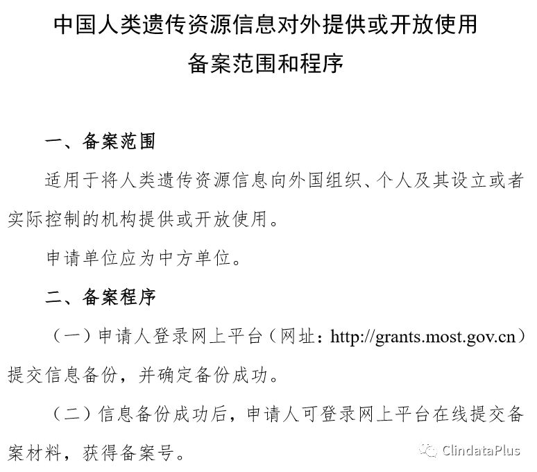 中国人类遗传管理办公室关于近期办理人类遗传资源行政审批和备案事项的申报提示 各有关单位: 针对近期申请人在办理中国人类遗传资源国际合作科学研究审批和中国人类遗传资源国际合作临床试验备案时出现的常见问题,提示申请人以下注意事项: 一、中国人类遗传资源国际合作科学研究审批 1.申请书“封面信息”部分。 错误示例1:合作方:某制药公司。 错误原因:合作方填写不完整。 错误示例2:合作方:某制药公司、某医院、某合同研究组织、某第三方实验室、某EDC(Electronic Data Capture,电子数据捕获系统)提供商。 错误原因:EDC提供商不实质性参与合作,不应填写为合作方。 修改方法:合作方填写某制药公司、某医院、某合同研究组织、某第三方实验室。 问题分析:合作方是指参与合作的所有中方单位、外方单位。为获得相关药品和医疗器械在我国上市许可的临床试验合作方包括临床试验申办方、医疗机构(单中心或组长单位)、合同研究组织、第三方实验室等。 2. 申请书“剩余人类遗传资源的处置方案”部分。 错误示例:申请书中涉及的人类遗传资源为全血、血清、血浆、组织切片、尿液,不销毁情况表中人类遗传资源类型填写组织切片,销毁情况表中人类遗传资源类型填写全血。 错误原因:申请书中涉及的人类遗传资源在处置方案中填写不全,未填写血清、血浆、尿液样本的处置方案。 修改方法:填写申请书中涉及的全部人类遗传资源的处置方案。 3. 附件。 错误示例:法人资格材料部分仅上传某医院的法人资格材料。 错误原因:合作方法人资格材料不全。 修改方法:申请人应上传全部合作方的法人资格材料。如合作方为企业,需上传营业执照;如合作单位为事业单位,需上传事业单位法人证书。 二、中国人类遗传资源国际合作临床试验备案 错误示例1:项目名称:某基础研究 错误原因:该项目不属于为获得相关药品和医疗器械在我国上市许可的临床试验。 修改方法:按中国人类遗传资源国际合作科学研究审批申请渠道办理。 错误示例2:项目涉及全血、血浆样本出境。 错误原因:不属于在临床机构利用我国人类遗传资源开展国际合作临床试验范畴,涉及人类遗传资源材料出境。 修改方法:按中国人类遗传资源材料出境审批申请渠道办理。 错误示例3:某临床试验项目,血浆样本在某医院收集,在某第三方实验室检测,提供的是某制药企业与某第三方实验室签署的委托协议。 错误原因:不符合“在临床机构利用我国人类遗传资源”的要求。 修改方法:应报送由临床机构与其委托单位签署的正式协议,这样才符合“在临床机构利用我国人类遗传资源”的要求,或按中国人类遗传资源国际合作科学研究审批申请渠道办理。 问题分析:中国人类遗传资源国际合作临床试验备案适用于为获得相关药品和医疗器械在我国上市许可,在临床机构利用我国人类遗传资源开展国际合作临床试验、不涉及人类遗传资源材料出境的。 “在临床机构”包括:一是所涉及的人类遗传资源仅在临床机构内采集、检测、分析和剩余样本处理等;二是所涉及的人类遗传资源在临床机构内采集,由临床机构委托的单位进行检测、分析和剩余样本处理等。临床机构应与其委托的单位签署正式协议,明确委托检测和分析的人类遗传资源材料的种类、数量、检测内容、转运方式、剩余样本和数据信息处理方式等,并对其委托的活动负责。