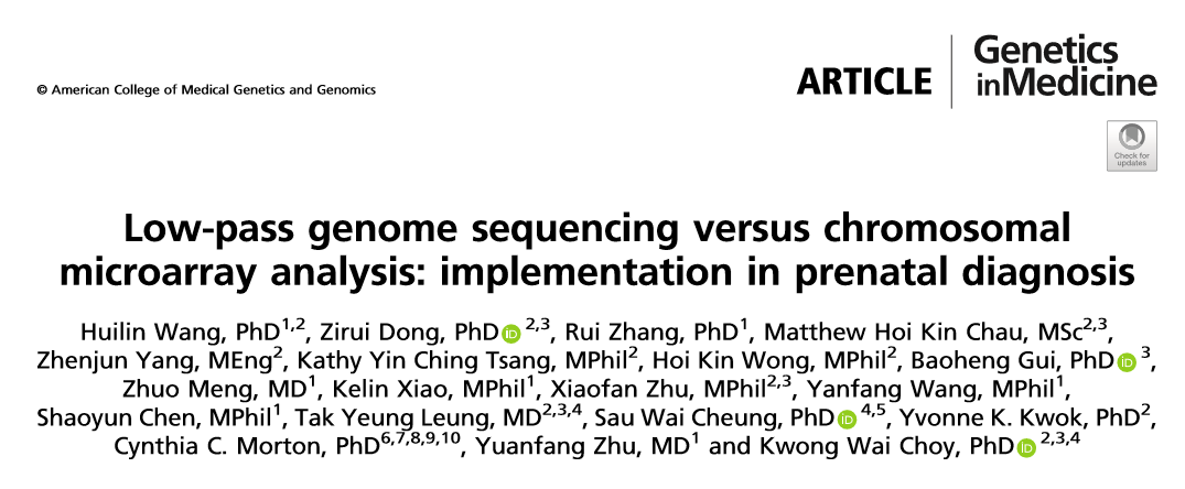 在产前诊断的实际应用中对比CNV-seq和CMA